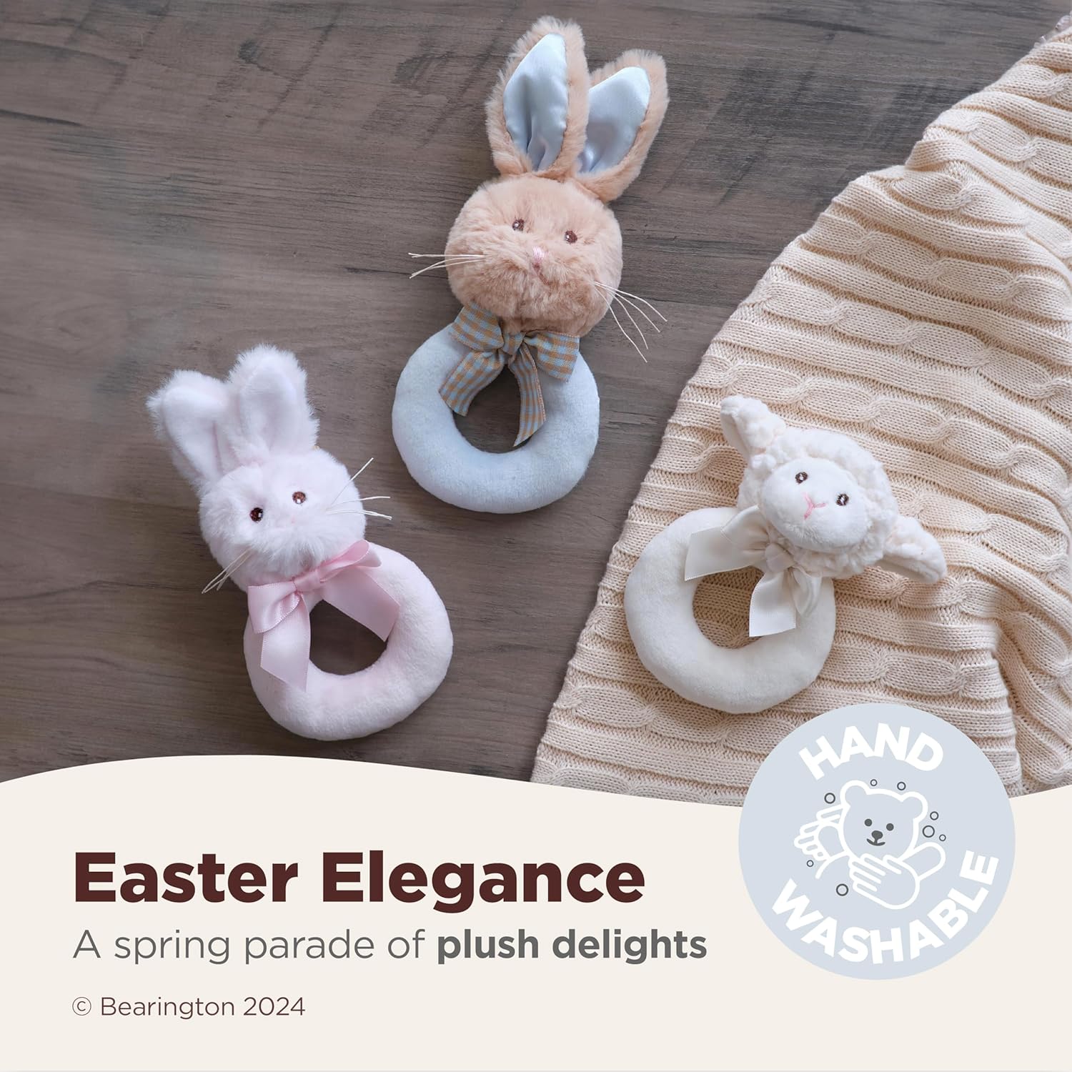 Bearington Collection Baby Lil' Bunny, 5.5 in Plush Bunny Rabbit Stuffed Animal, Soft Baby Rattles and Plush Rings Gift - Newborn Toy