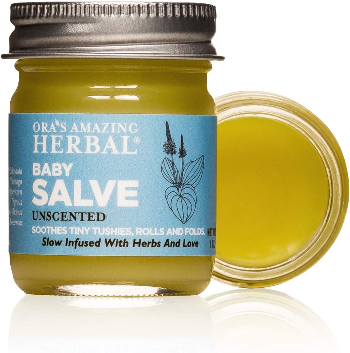- Tushies aren't the only areas on a baby that need care. Avoid overbathing by using a small amount of salve to wipe down areas that tend to collect debris and get irritated. Fat little necks, behind ears and knees, and in various rolls and folds can be kept healthy with an occational application of a thin layer of Ora's Amazing Herbal Baby Salve.