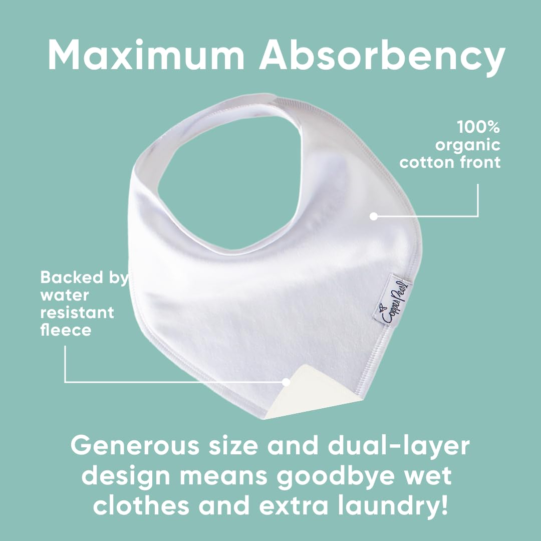 - MAXIMUM ABSORPTION: Fronted by ultra-soft Organic Cotton and lined with water-resistant polyester fleece to provide an extra layer of absorbency. Each bib is crafted with dual-layer protection against heavy drooling or spit-up, keeping your baby dry and comfortable.