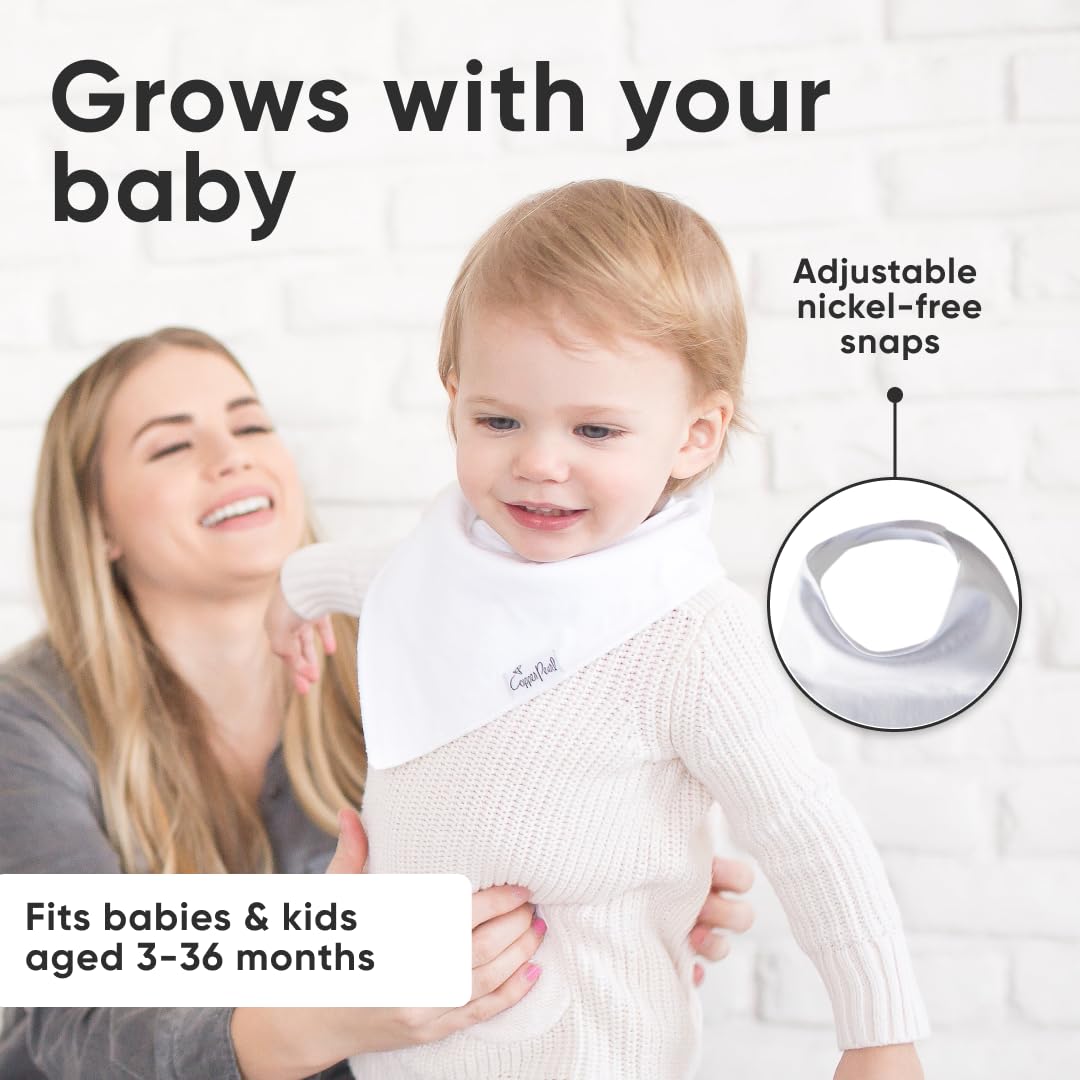 - GROWS WITH YOUR BABY: Each bib features two adjustable nickel-free snaps, allowing for a perfect fit from newborn through toddlerhood (3–36 months).