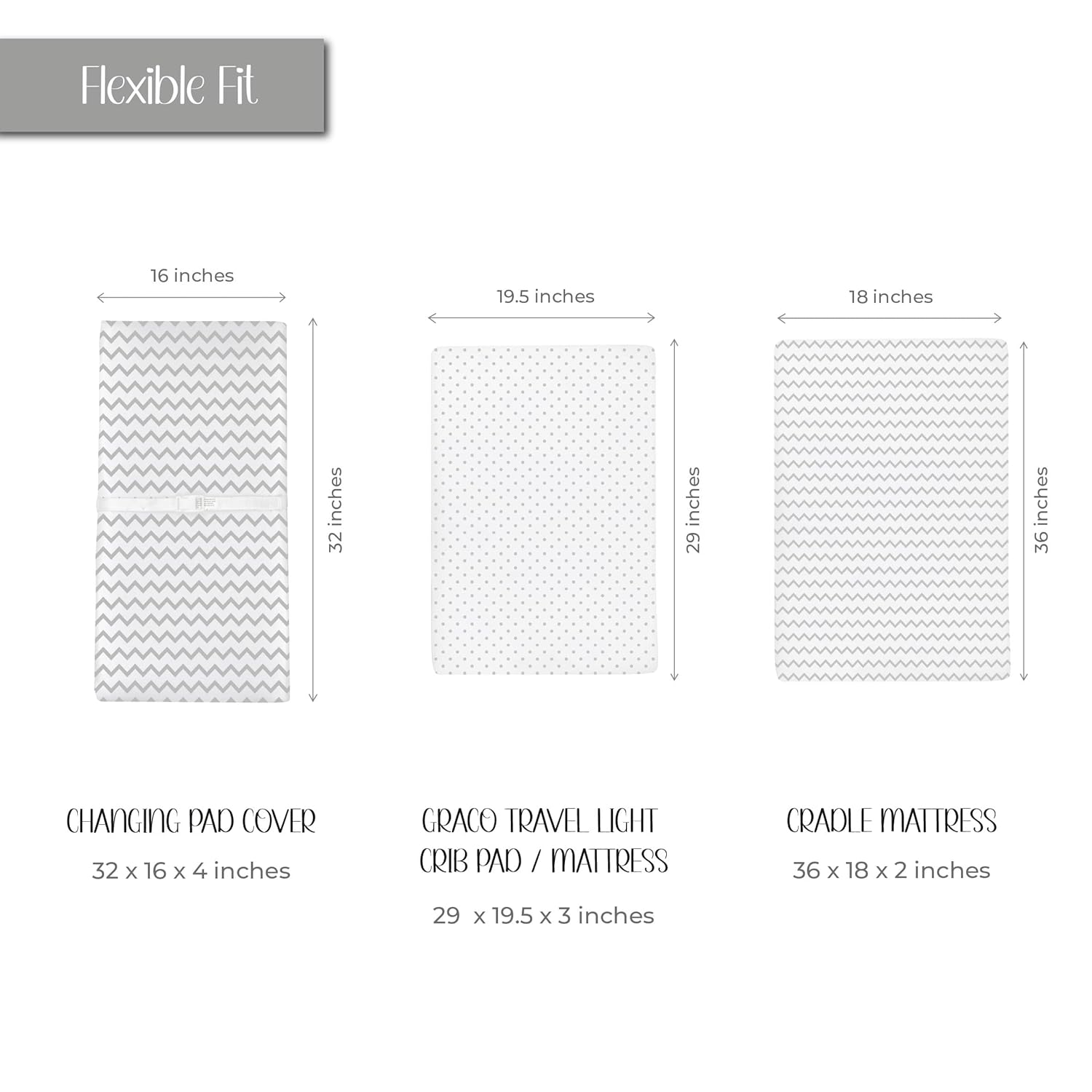 - Changing Pad Covers│Cradle Sheet 2-Pack for Baby Boy or Baby Girl in Grey Chevron and Polka Dot Print – Bundled in our charmingly cute and compact packaging this set makes for the perfect baby shower gift!