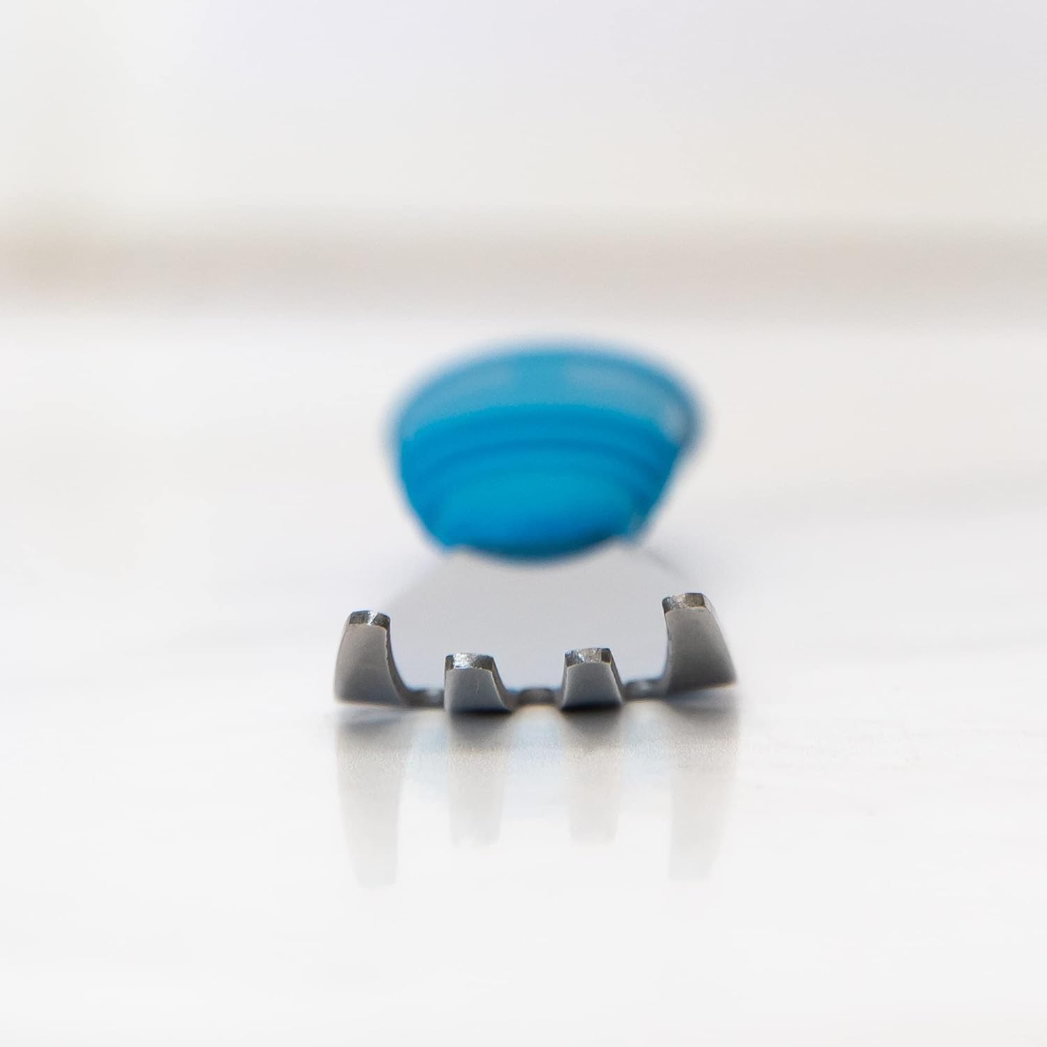 - TODDLER UTENSILS β This set is sized and shaped just right for self-feeding; concave stainless-steel fork and spoon heads help keep food on the utensils; outer fork tines are bent (like a spork) to help pierce solid foods and keep food on the fork