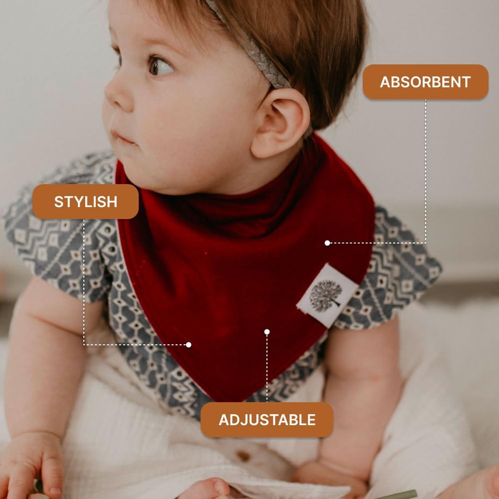 - SUPER SOFT, ABSORBENT & MESS-READY β Made with 100% cotton on the front and soft, absorbent polyester backing, these bibs catch drool, spit-up, and food messes, keeping baby dry, comfortable, and stylish all day long.