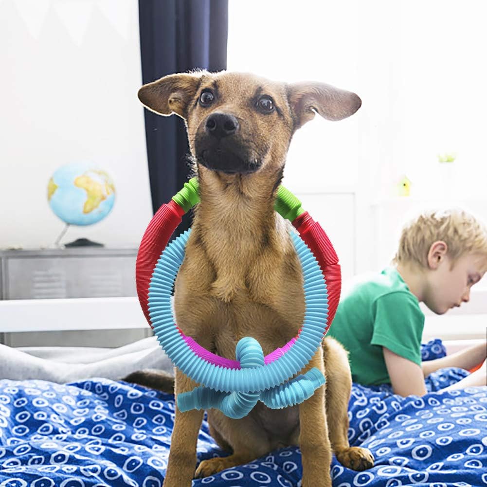 - Colorful: 4 pop tubes in 4 different colors green, red, purple, and blue. It's very attractive to children. Compressed, they are 7.6 inches in length and 0.9 inch in diameter and they reach 26 inches when stretched.