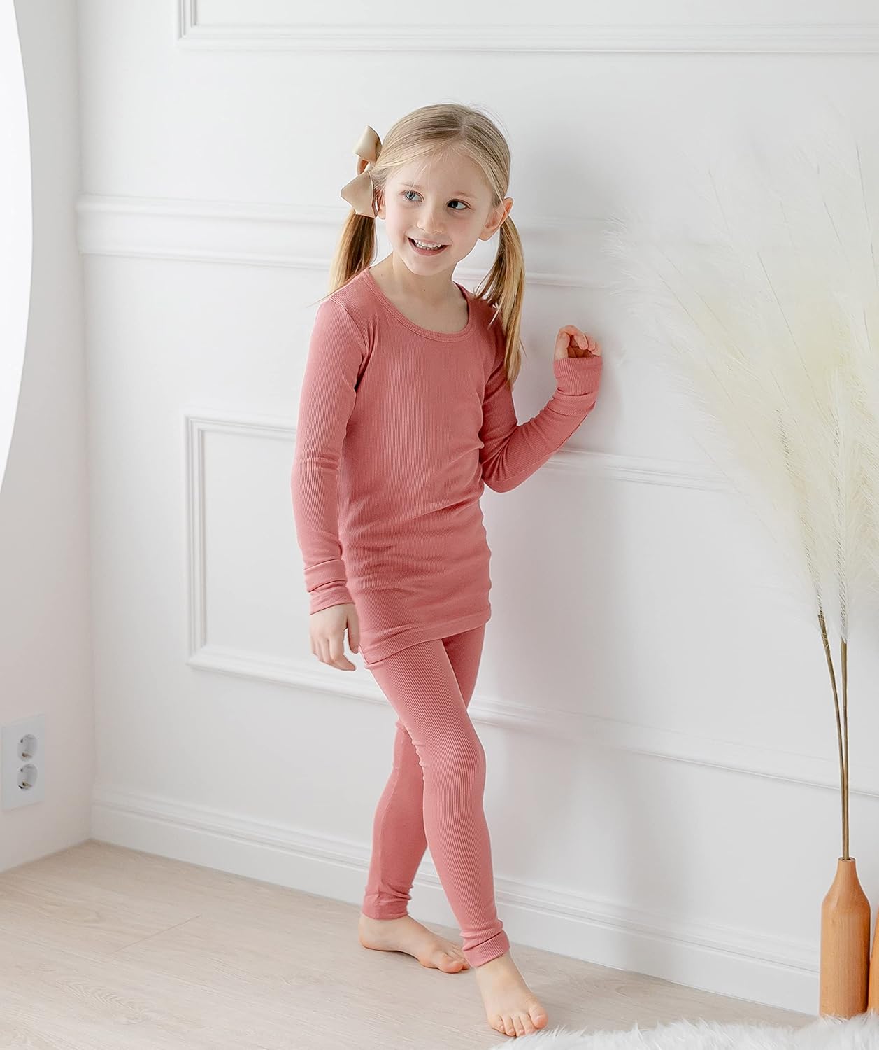 - COMFORTABLE FABRIC - This stylish pj set is a perfect blend of multi-functional style and comfort ribbed knit. Viscose rayon is like a smooth material similar to silk breathable, similar to cotton in this regard. Enough to help protect child's delicate skin. That's why pajama set is Easy to dye, light weight, and natural material. It will give perfect fit.