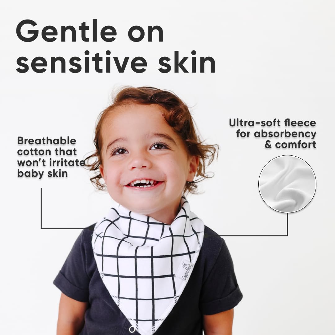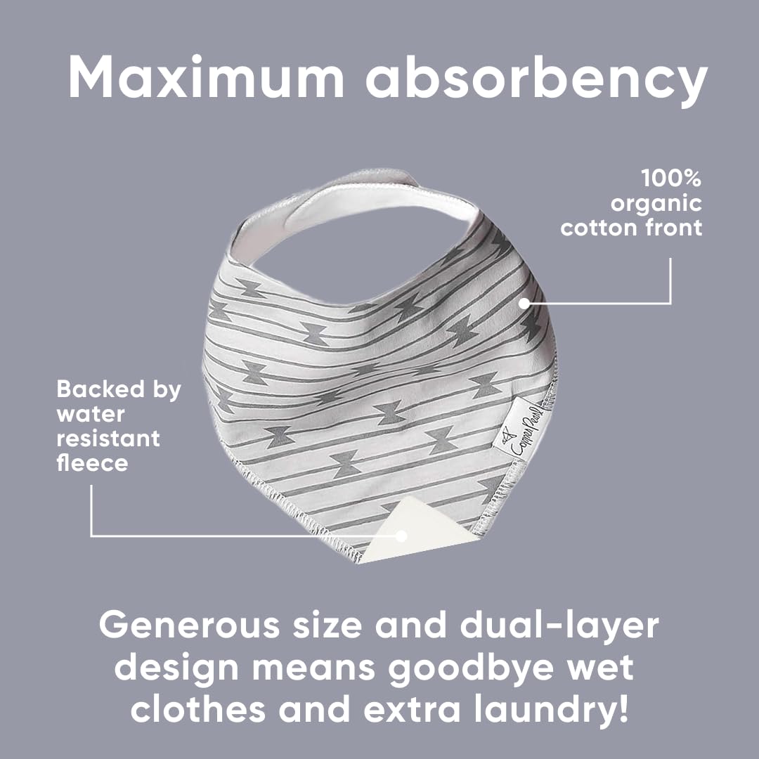 - MAXIMUM ABSORPTION: Fronted by ultra-soft Organic Cotton and lined with water-resistant polyester fleece to provide an extra layer of absorbency. Each bib is crafted with dual-layer protection against heavy drooling or spit-up, keeping your baby dry and comfortable.