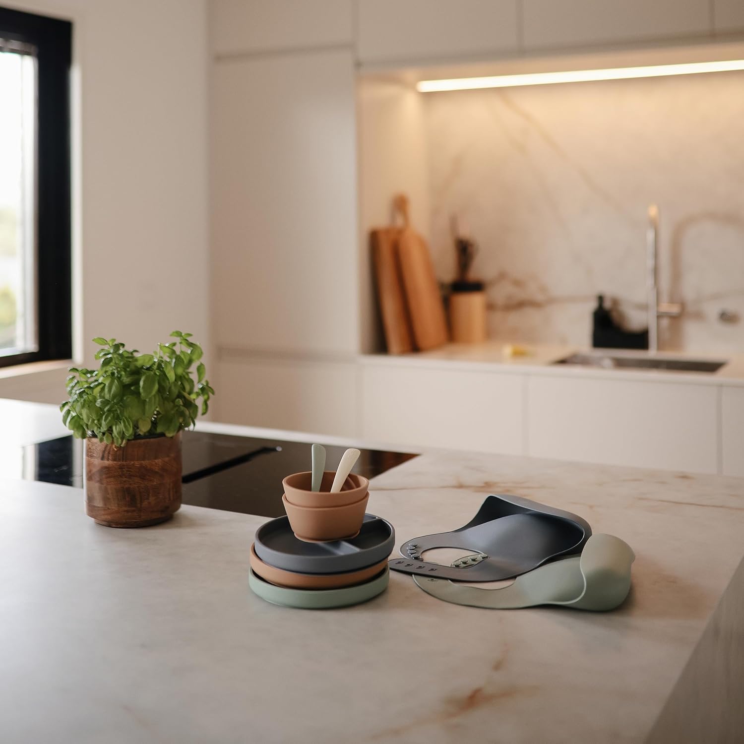 - Keep your little one feeling comfy and clean with our fun-loving collection of silicone bibs. Designed in Sweden, mushie bibs feature classic patterns capturing a look that's both timeless and elegant. Our timeless colors and patterns pair well with mushie silicone placemats, splat mats and tableware.