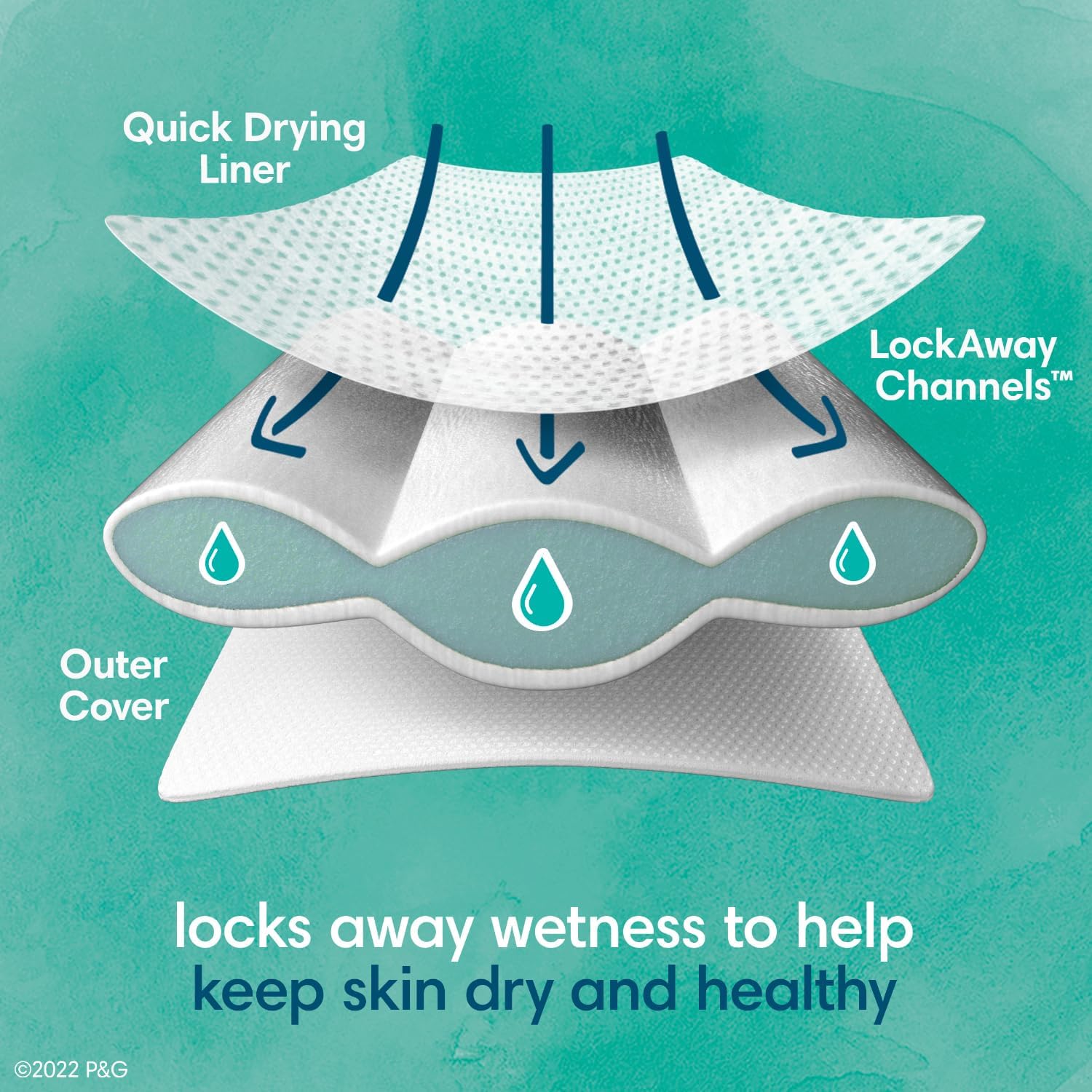 - Absorbent Lockaway Core stays 2X drier for healthy skin