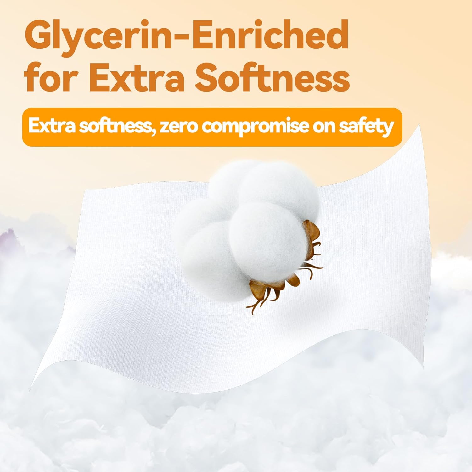 - ULTRA-GENTLE & HYDRATING BABY WIPES – Crafted from 100% US cotton infused with natural glycerin, these dry wipes provide exceptional softness while locking in moisture. The nourishing formula helps protect your baby's delicate skin barrier, preventing dryness and irritation.