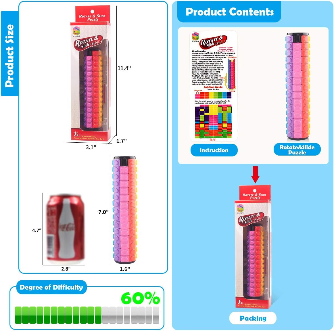 - 【 Uses 】Unlike other brain games,the patented,critically acclaimed cube puzzle is a unique toy and unique gift,it is a combination of rotating magic cube and slide puzzle,each puzzle piece can be rotated from up and down with a whole column around the axis as well as be slided left and right on a row