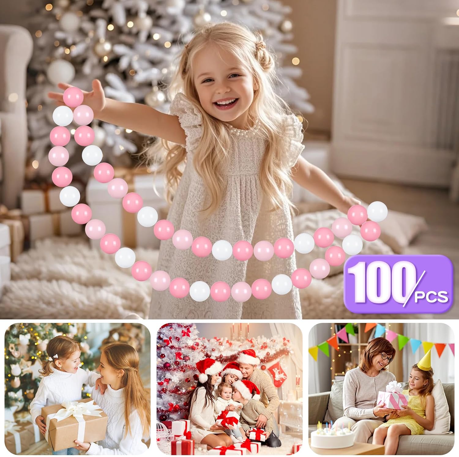 GOGOSO Ball Pit Balls 100 PCS for Toddles, Kids Plastic Balls for Ball Pit, Pool, Pink Party Accessories, Birthday Decoration, Crush Proof and Durable with Storage Bag