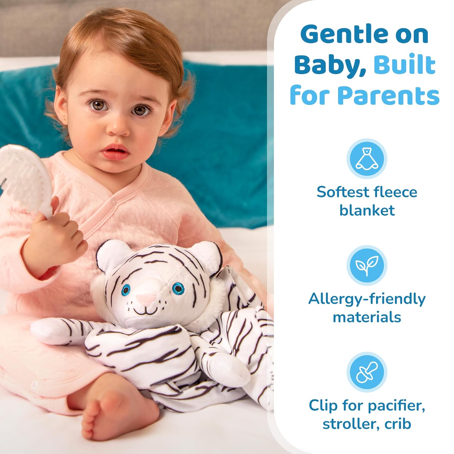 Love By Emi Baby Music Lovey White Tiger, Baby Sleep Soother for Crib & Cuddle Bedtime, White Noise with a Heartbeat & Lullaby, Plush Sound Machine Toy, Stuffed Animal for Newborns, Infants & Toddlers