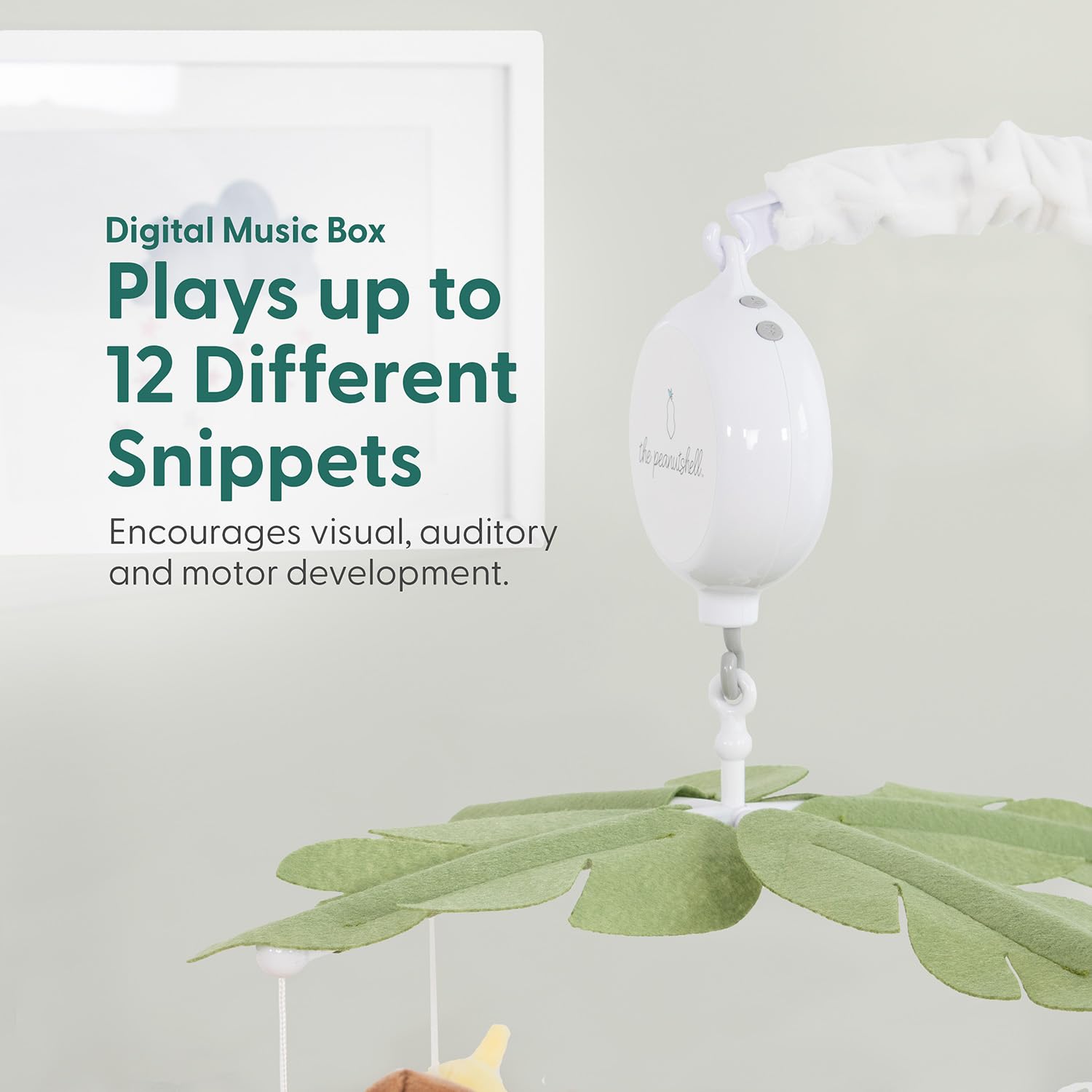 The Peanutshell Crib Mobile for Boys or Girls - White Musical Baby Crib Mobile with 12 Lullabies, Jungle Animal, Baby Safari Animals Nursery Decor