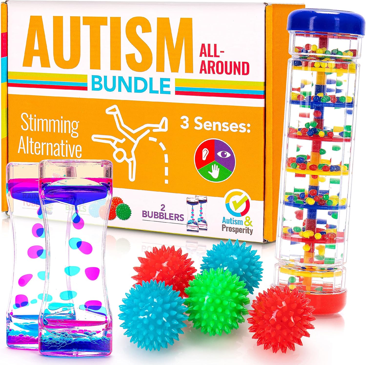 Autism & Prosperity Autism Sensory Products Bundle - Sensory Toys for Kids with Autism, Rainmaker Bubblers Spiky Sensory Balls for Autistic Children, Special Education Autism Toys Age 3 4 5 7 8 12