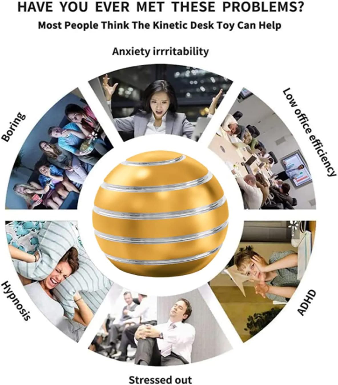 - ADHD ANXIETY STRESS RELIEF TOYS - The kinetic desk toy has been designed to help people of all ages relieve stress and anxiety. It helps students focus, it is relaxing for people with ADHD, it helps seniors improve manual dexterity, and it even helps quitting smoking or biting the nails