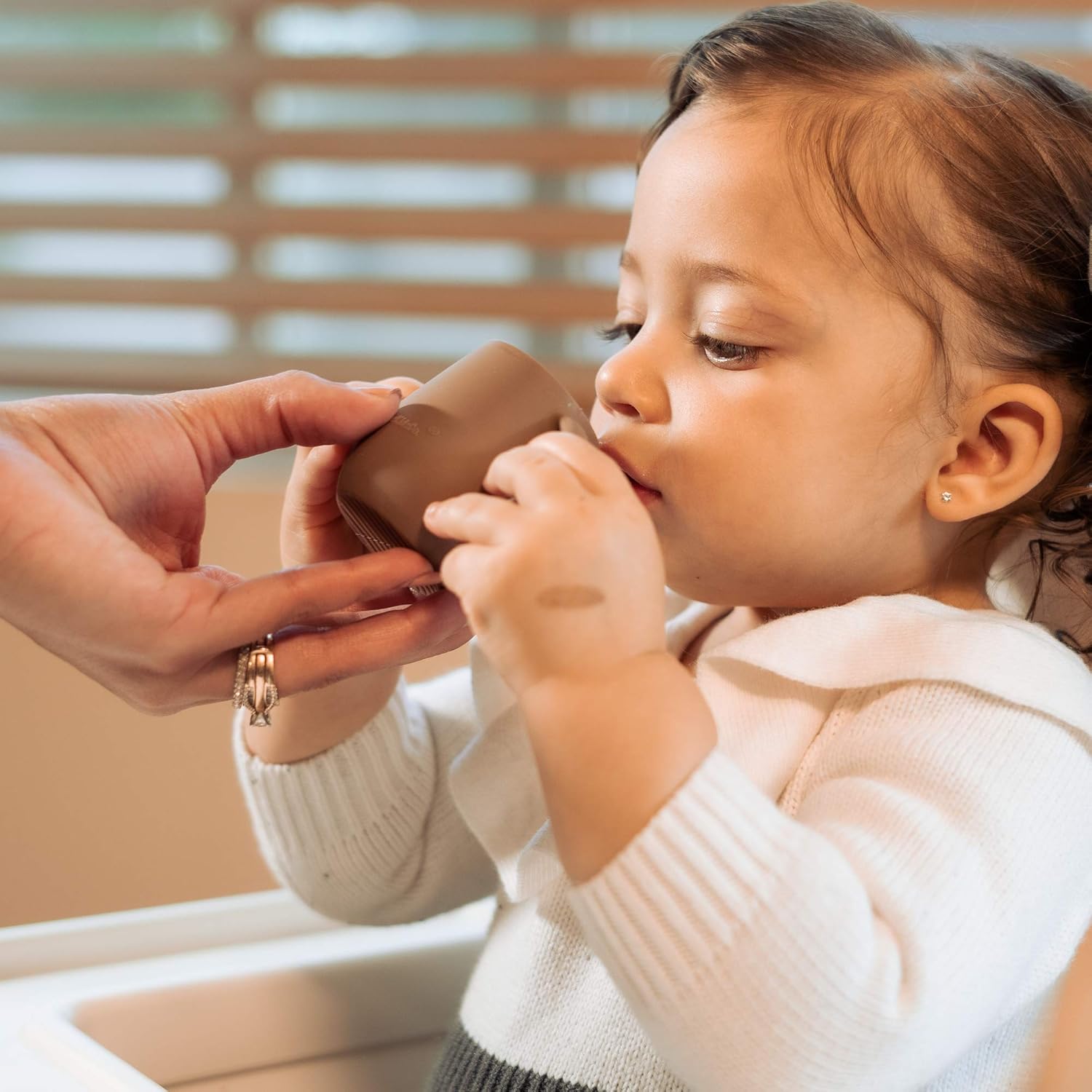 | Teenie Tiny™ Silicone Developmental Baby-Led Weaning Drinking Cups (2 pack) (Warm Taupe and Blue Fusion)