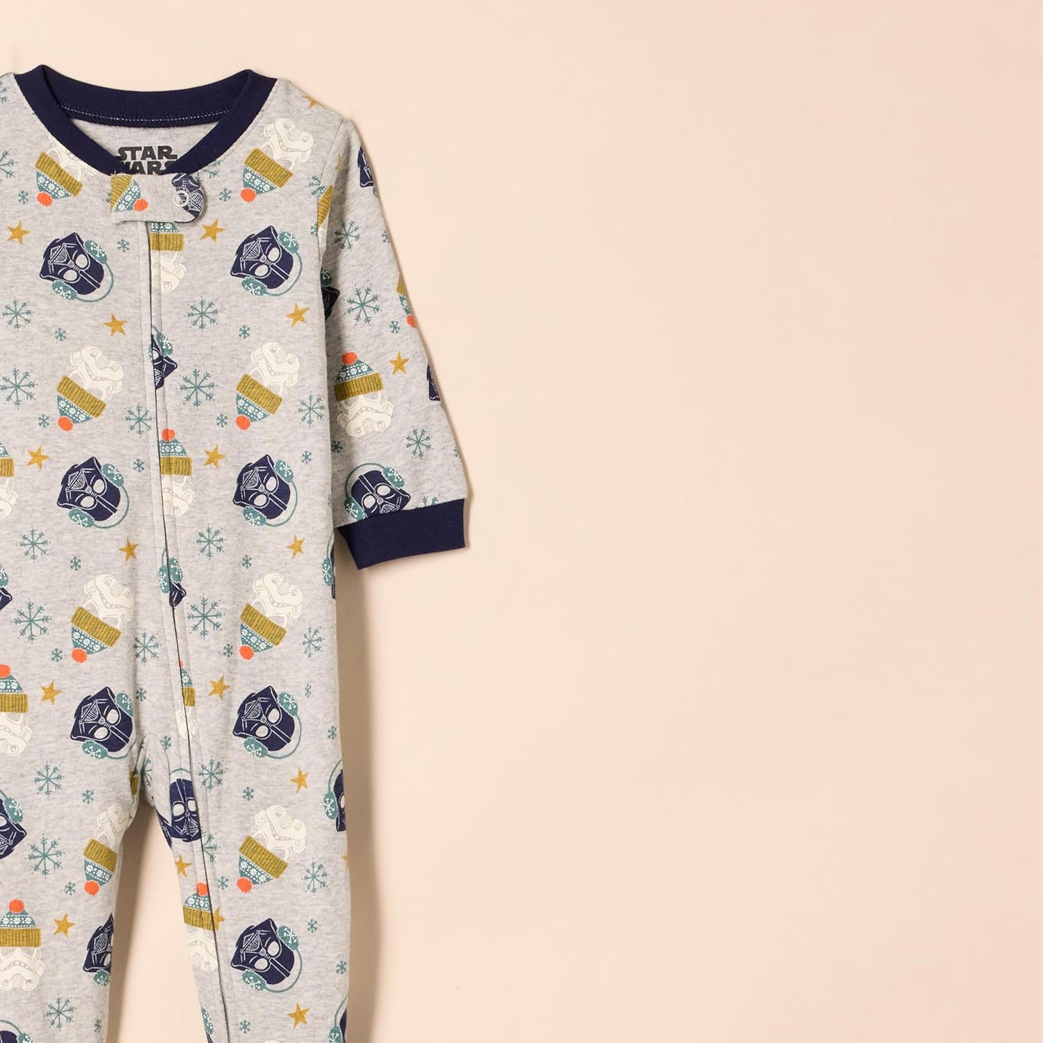 Amazon Essentials Disney | Marvel | Star Wars Unisex Babies' and Toddlers' Snug-Fit Cotton Footed Pajamas, Multipacks