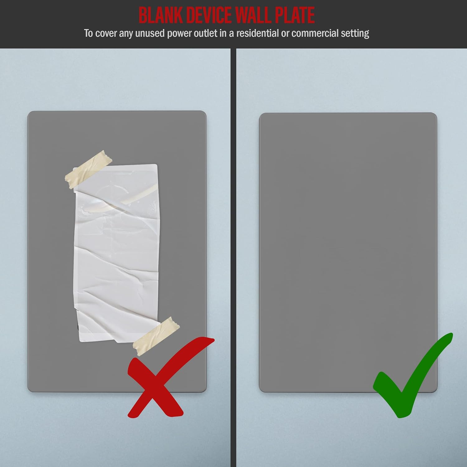 ENERLITES Screwless Blank Wall Plate, Child Safe Blank Device Outlet Cover, Standard Size, 1-Gang 4.68" x 2.93", Polycarbonate Thermoplastic, UL Listed, SI8801-GY, Glossy, Gray