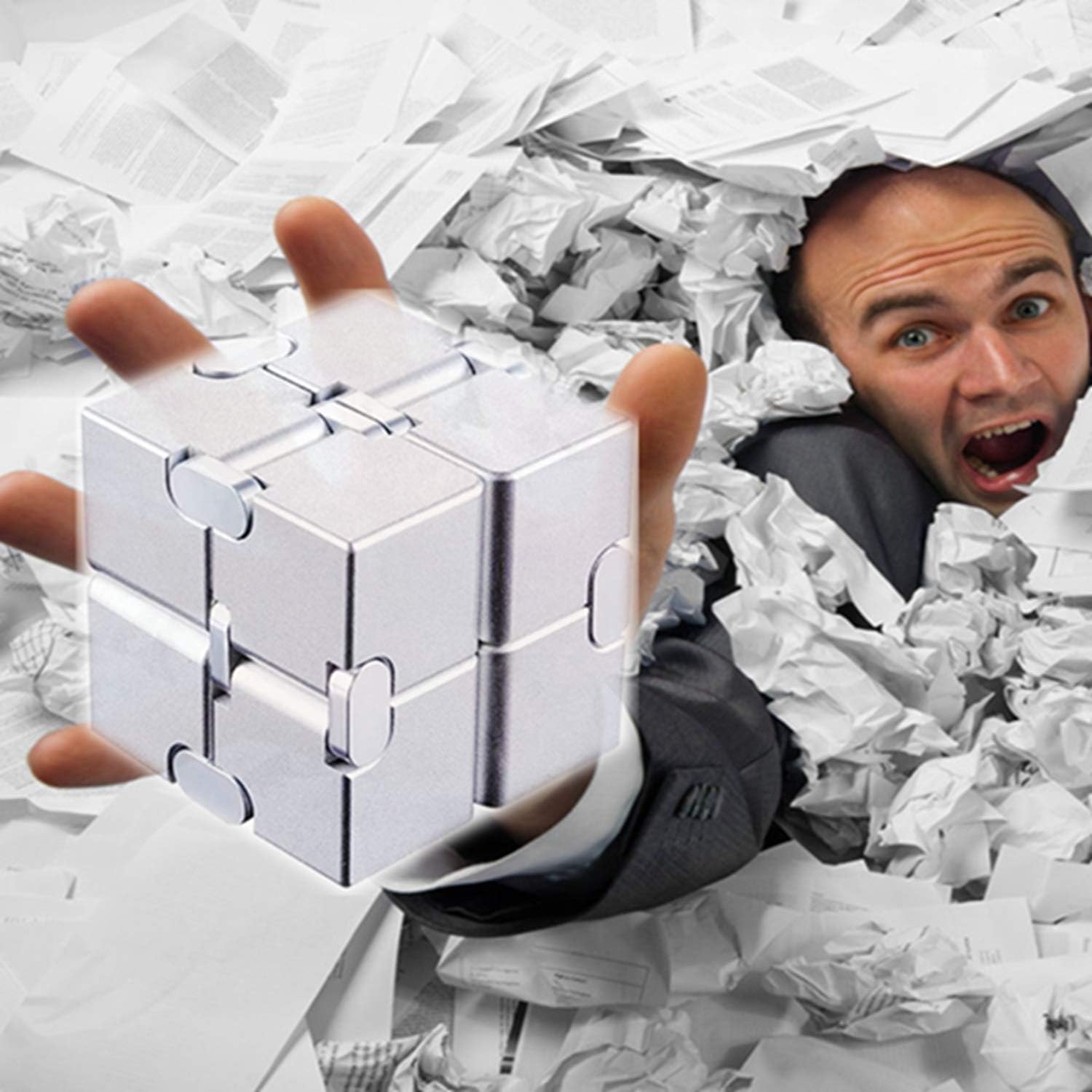 Infinity Cube Fidget Toys Aluminum Metal Stress Relief and Anti Anxiety Finger Flip Cubes Toys for Kids and Adults Idear Gadgets for Men with Exquisite Packaging