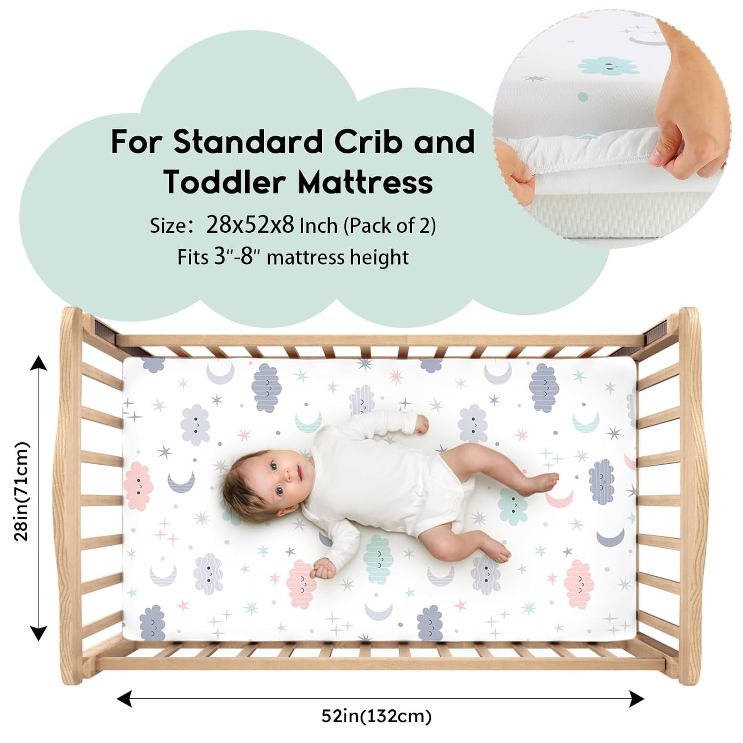 Yoofoss Baby Crib Sheets for Boys Girls, Fitted Crib Sheet 2 Pack for Standard Crib and Toddler Mattress, Super Soft Microfiber Baby Sheet 28x52x8in(Cloud)