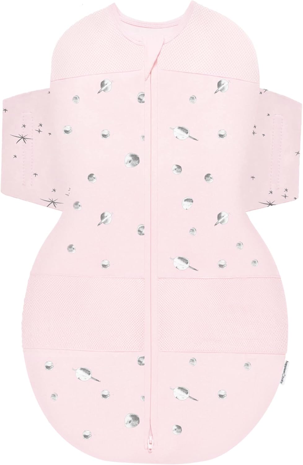 Happiest Baby SNOO Sleep Sack - 100% Organic Cotton Baby Swaddle Blanket - Doctor Designed Promotes Healthy Hip Development (Rose Planets, Medium)