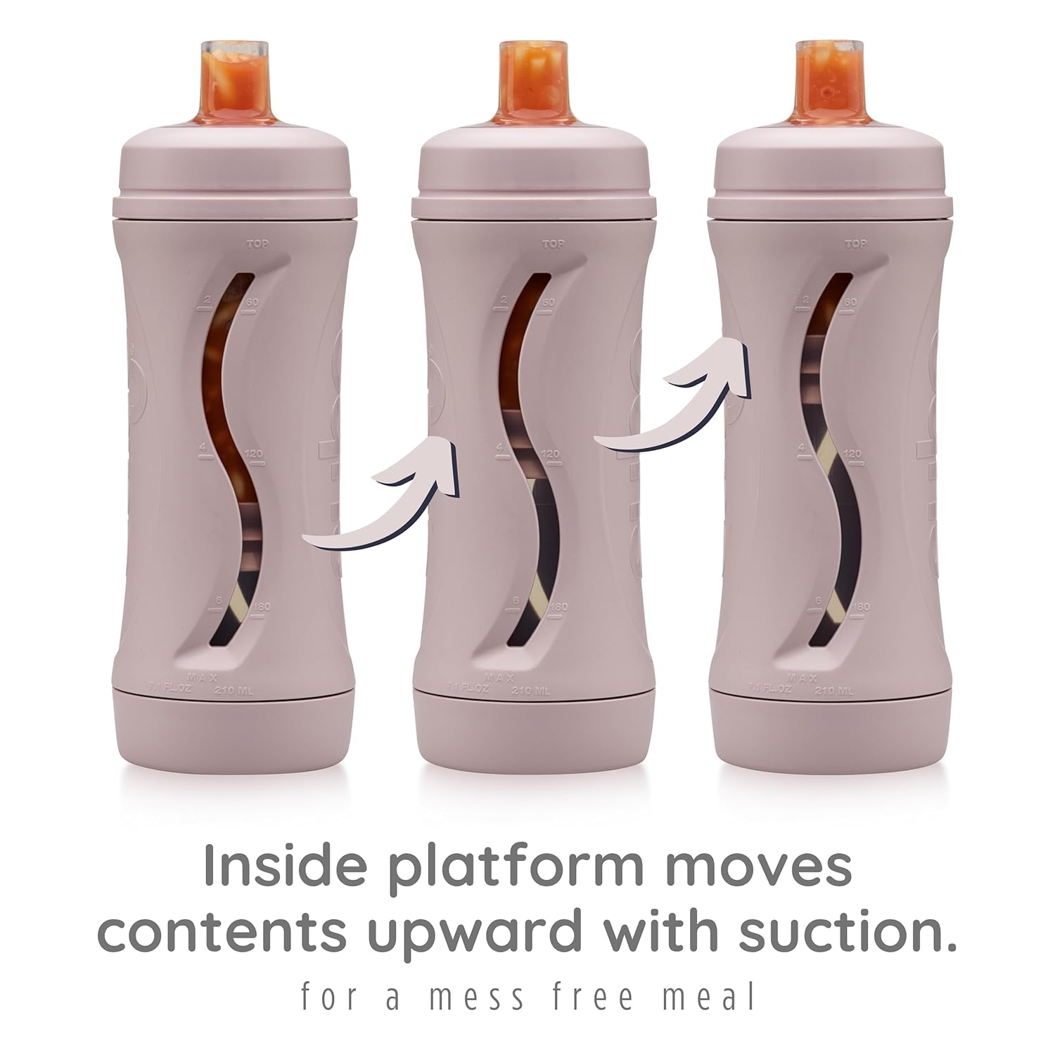 - AUTOMATIC PLATFORM: The Subo food bottle is the perfect feeding solution for young children, starting at just 4 months old with rice cereal or level one purees using the 5mm (1/4 inch) spout (included in the Starter Set). This bottle allows children to easily sip and enjoy their food through a soft silicone spout. The platform inside the bottle automatically moves up as the child consumes the food, ensuring they get every last bit without any struggle. This makes mealtime fun and stress-free.