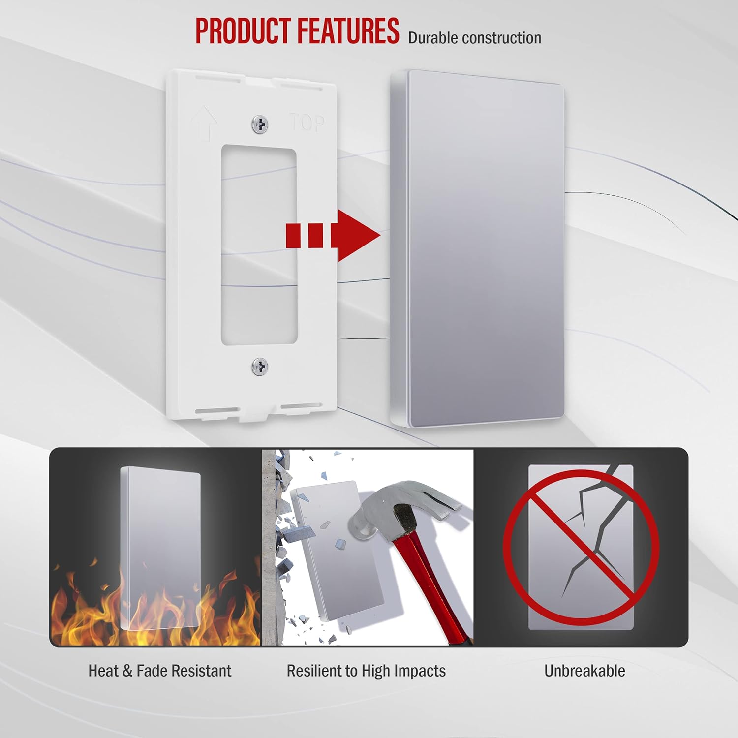 - Easy replacement of any wall plate of the same configuration; standard size dimensions: 4.68" height x 2.93 length