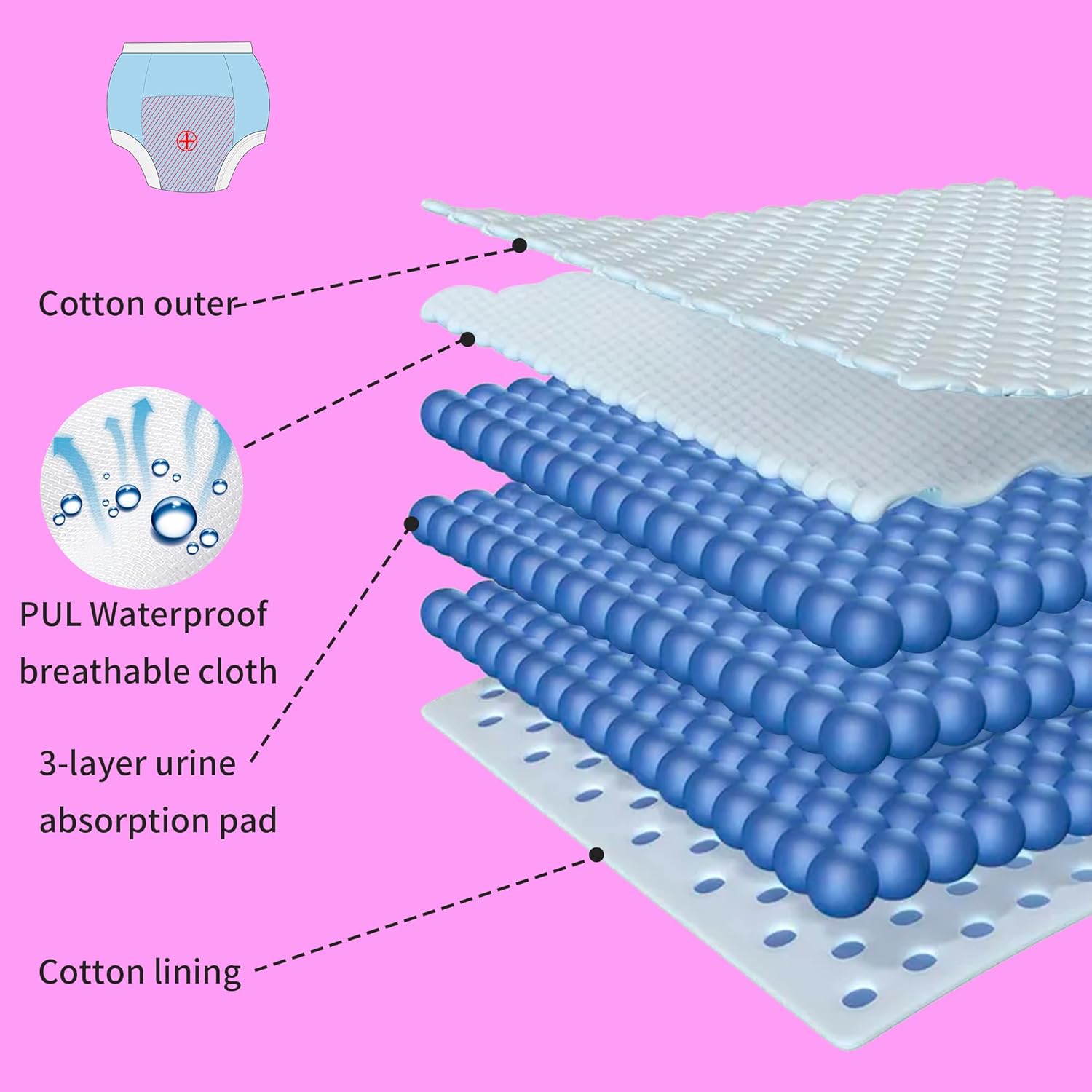 - 【Machine-Washable 10-Pack】Includes 10 pairs so you’re always ready for successful toilet training. For maximum absorbency, wash once before first use. After that, simply machine-wash in water up to 40 °C (no chlorine bleach) and tumble-dry on low.