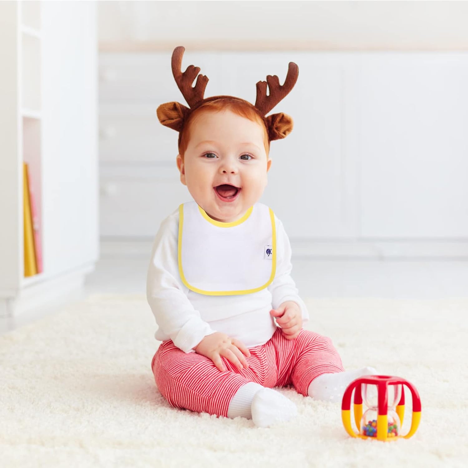 - Double Sided terrycloth design:Snap bib keep your baby clean & dry with these large, waterproof PP lined, terry cloth drooler bibs. The plain bright colors for boys.