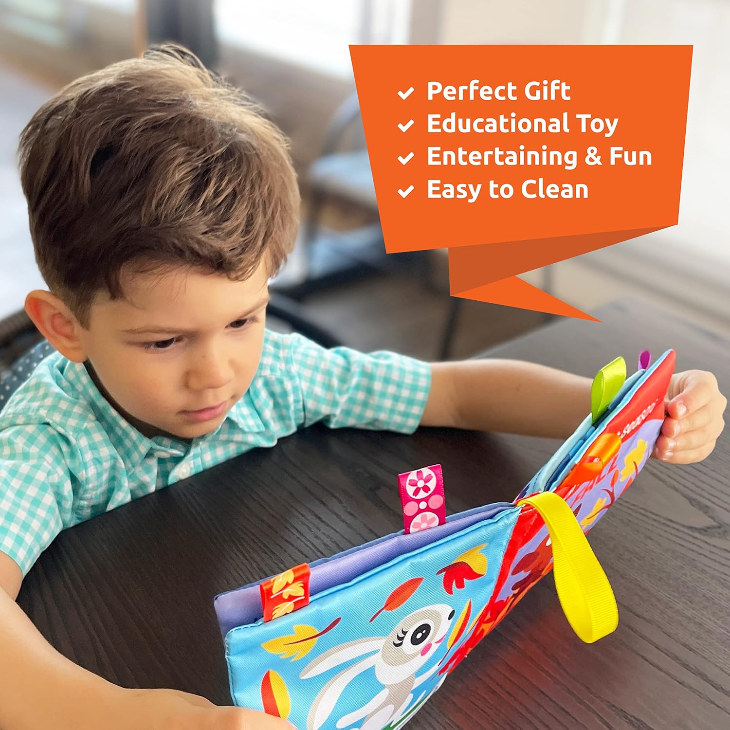 - ON-THE-GO TOY – These soft books for babies are lightweight and make a great companion for travel or outdoor play. Each crinkle book has a special hook to attach to the stroller or a play gym.