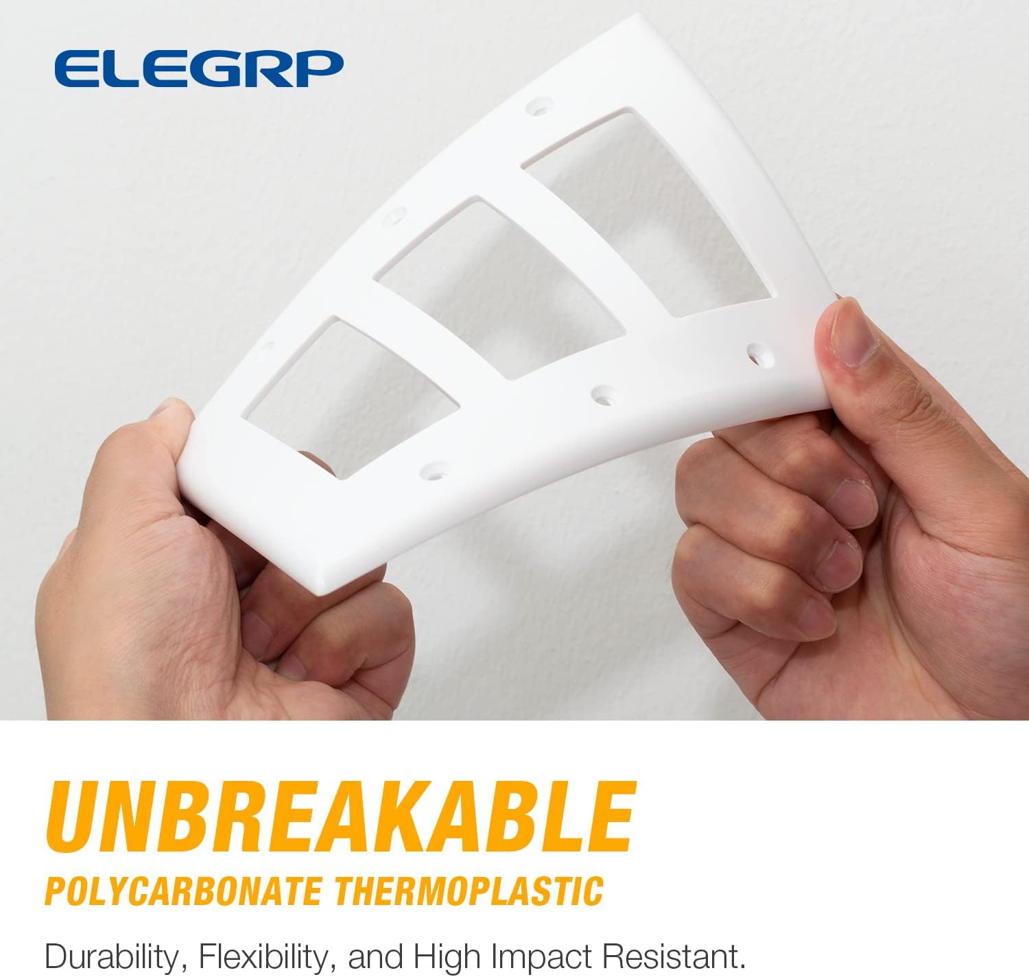 ELEGRP 3-Gang Decorative Wall Plates, Mid-Size 4.88" H x 6.75" L Unbreakable Thermoplastic Faceplate Cover for Decorator Receptacle Outlet Switch, UL Listed (2 Pack, Glossy White)