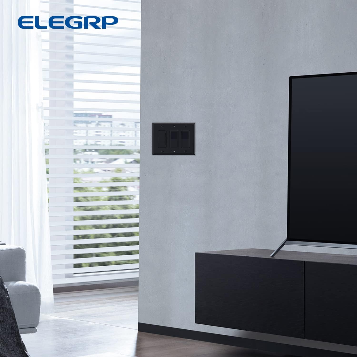 ELEGRP 3-Gang Decorative Wall Plates, Mid-Size 4.88" H x 6.75" L Unbreakable Thermoplastic Faceplate Cover for Decorator Receptacle Outlet Switch, UL Listed (5 Pack, Glossy Black)