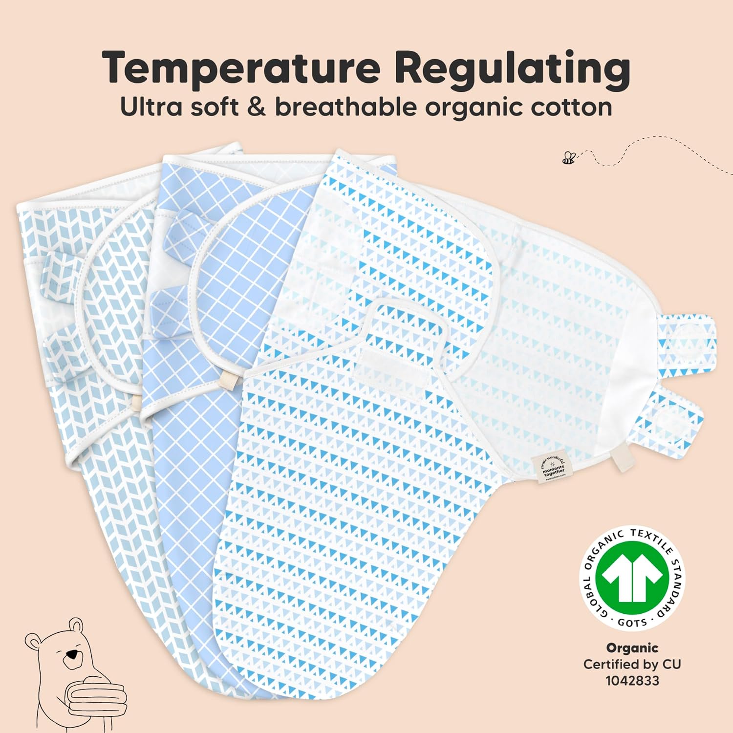 - Breathable & Temperature-regulating - Our Soothe Swaddle for newborns is made with ultra-soft Organic Cotton (GOTS Certified by CU 1042833), it is lightweight and highly breathable which makes it a highly-raved newborn swaddle sack for all seasons.