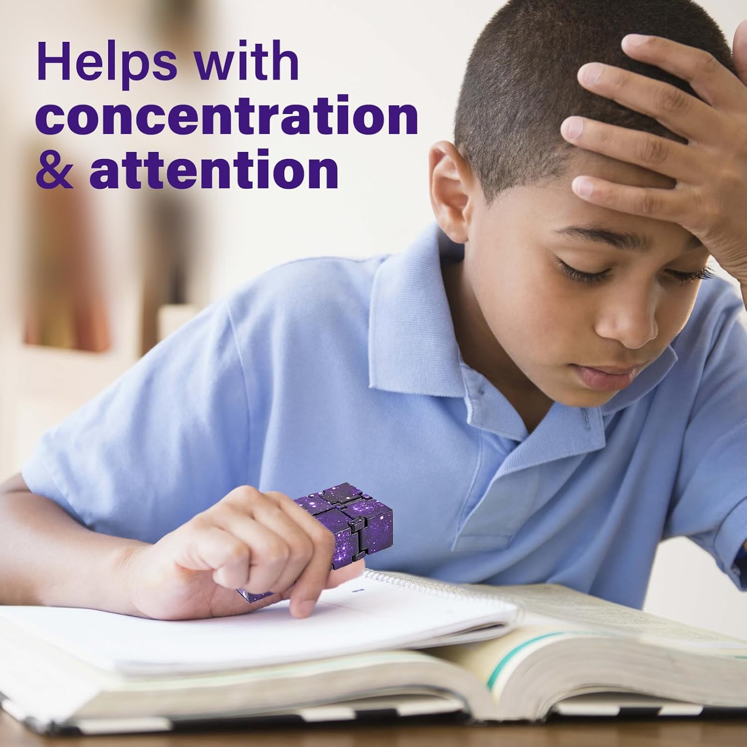 Infinitycube Fidget Toy Stress Relieving Fidgeting Game for Kids and Adults,Cute Pocket-sized Unique Gadget for Anxiety Relief and Kill Time (Purple)