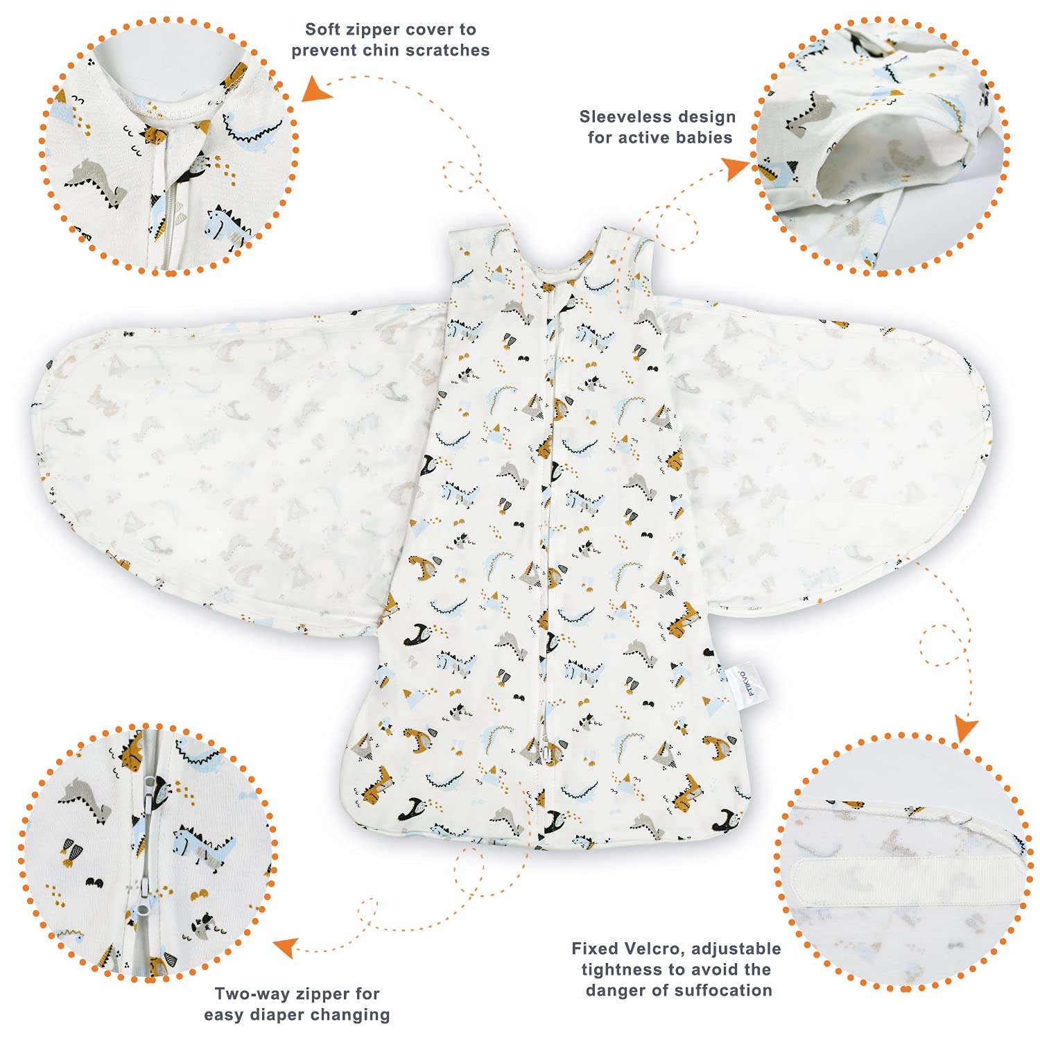 Swaddle-Blanket Baby Girl & Boy Swaddles Newborn Infant Transition 100% Cotton Wrap Blankets, 3-Way Adjustable Wearable Blanket, TOG 1.0 (Dinosaur, 3-6 Month)