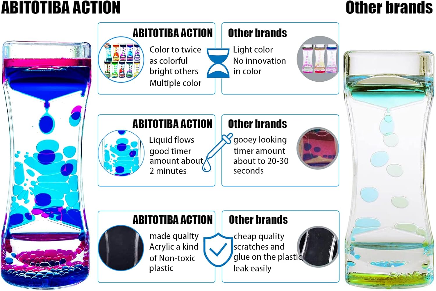 - Perfect Liquid Bubbler Timer Toys- A gentle fidget toy that pleases the eye and eases for comfort. It relaxes with its colorful droplets flowing to the bottom. Great gift for teenagers & adults