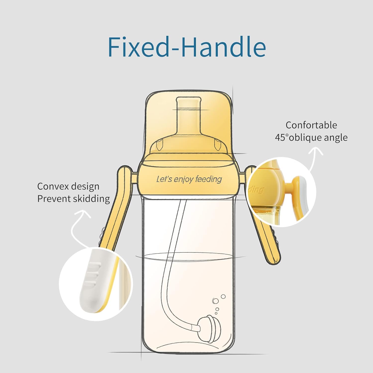 - Comfortable Handle: The angle between the handle and the cup is 45 degrees, making it easier for babies to grasp. The convex design on the surface increases the friction of the baby's hand and is not easy to fall.