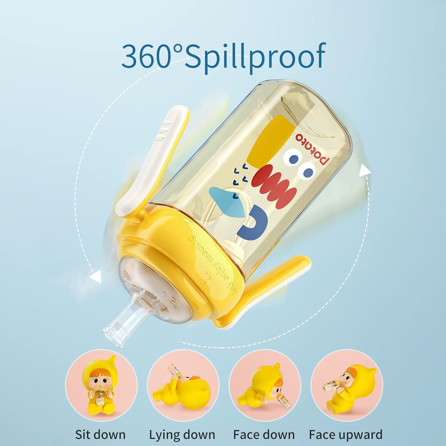 - Weighted Ball: The straw cup is equipped with a gravity ball straw, so your baby can easily drink water at any angle.