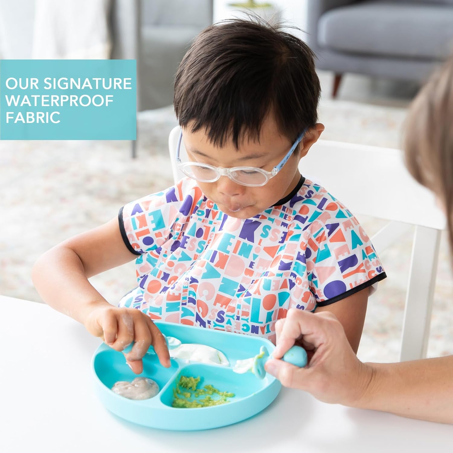 • SOFT YET STRONG – Bumkins signature waterproof fabric is durable and stands up to messes, yet it’s lightweight and comfortable for your little one; wash and reuse over and over again