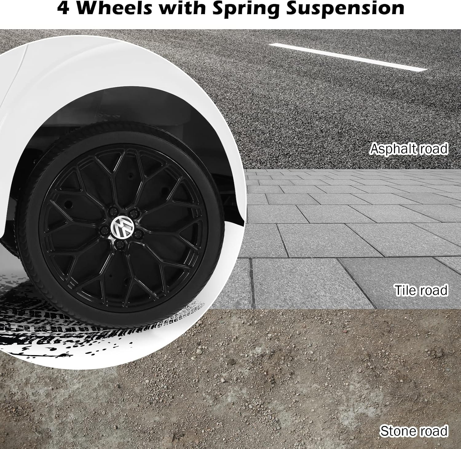 - Licensed Ride-on Car: This ride-on car is officially licensed by Volkswagen Beetle and is given a realistic appearance with double doors. The doors can open and lock while the headlights can stay on or flash along with the dashboard light, making the vehicle real-feel and attractive.