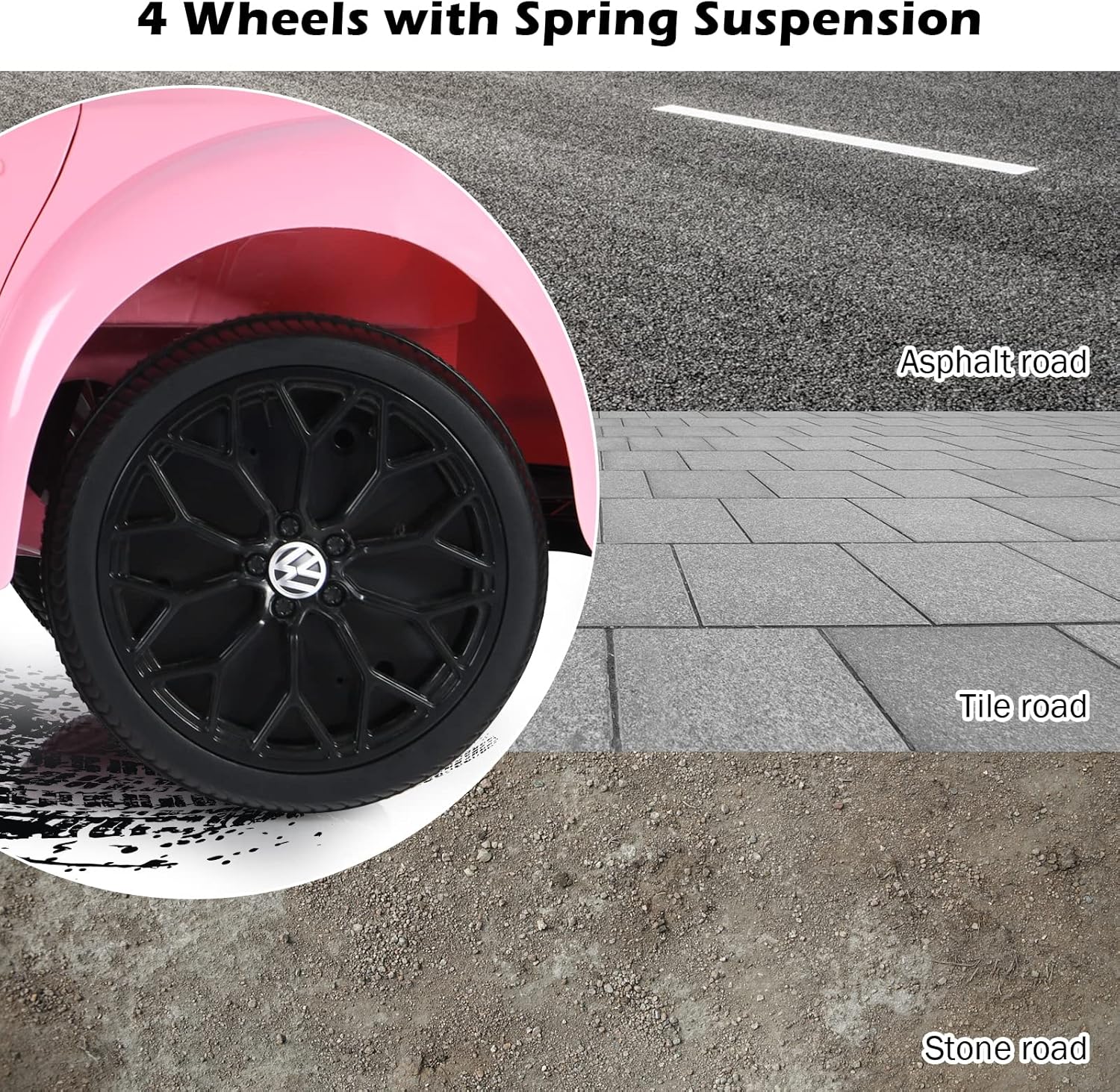 Costzon Ride on Car, 12V Licensed Volkswagen Beetle Battery Powered Vehicle w/Remote Control, Spring Suspension, Lights, USB, Horn, Music, 4 Wheeler for Boy Girl Gift, Electric Car for Kids, Pink
