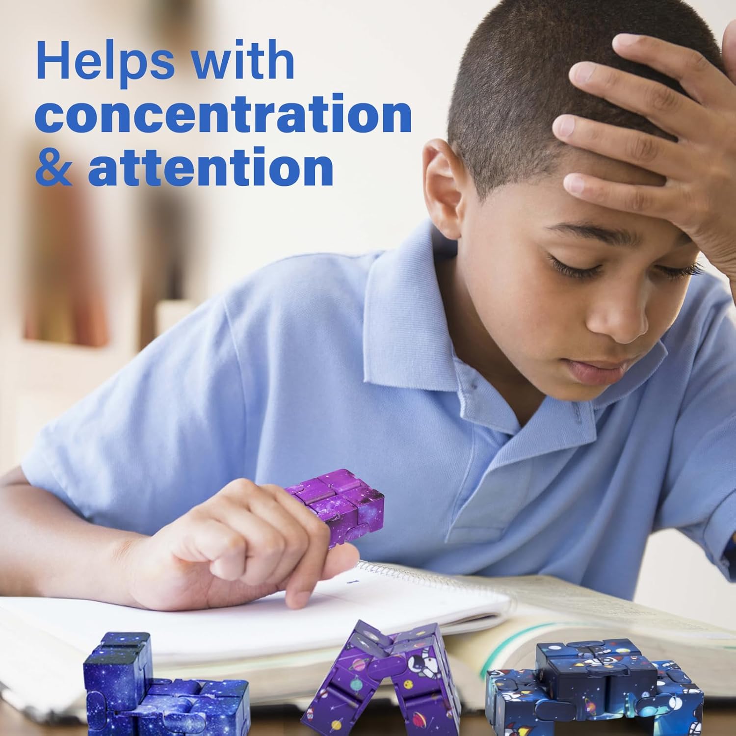Infinitycube Fidget Toy Stress Relieving Fidgeting Game for Kids and Adults,Cute Pocket-sized Unique Gadget for Anxiety Relief and Kill Time (4, Galaxy & Astronauts)