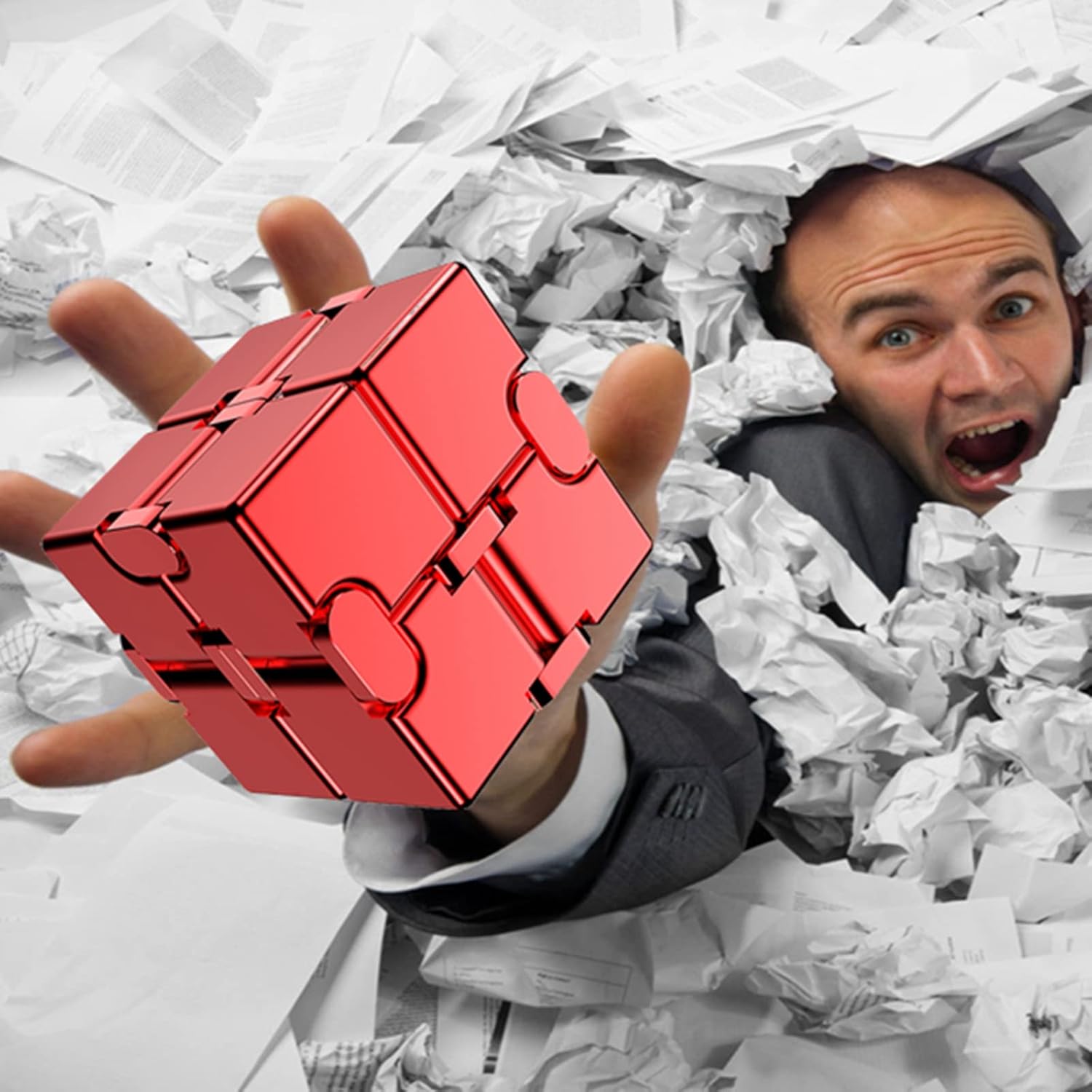 Fidget Blocks Toys Infinity Cube Anxiety Stress Relief Toy for Adults Gifts Aluminum Alloy Material (RED)
