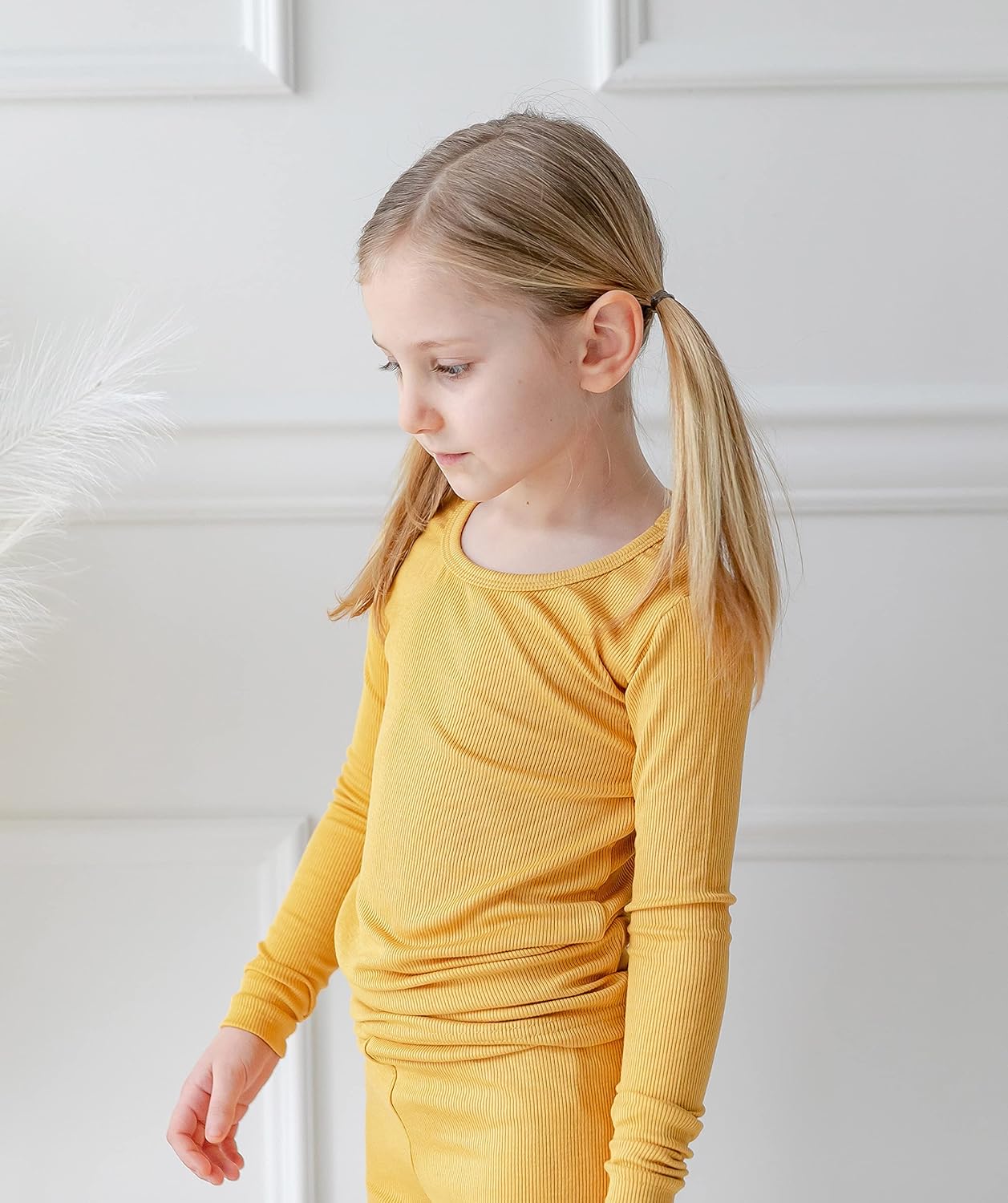 - COMFORTABLE FABRIC - This stylish pj set is a perfect blend of multi-functional style and comfort ribbed knit. Viscose rayon is like a smooth material similar to silk breathable, similar to cotton in this regard. Enough to help protect child's delicate skin. That's why pajama set is Easy to dye, light weight, and natural material. It will give perfect fit.
