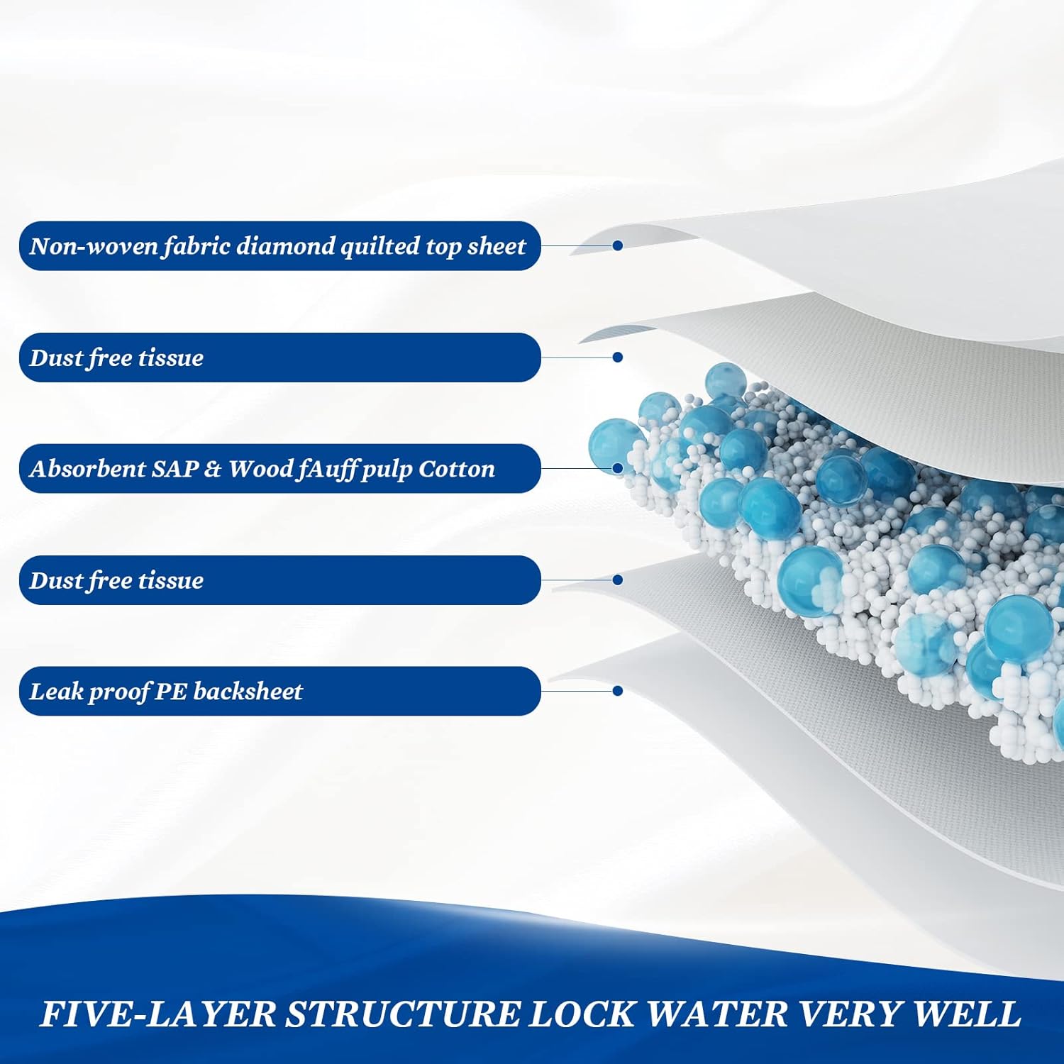 - Leak Protection and Odor control:Reinforced PE back film can stop messy leaks and stains.Gelling polymer quickly locks liquid and odor. Superior moisture and odor control ensure lasting dry and comfort to improve sleep, protecting from rashes