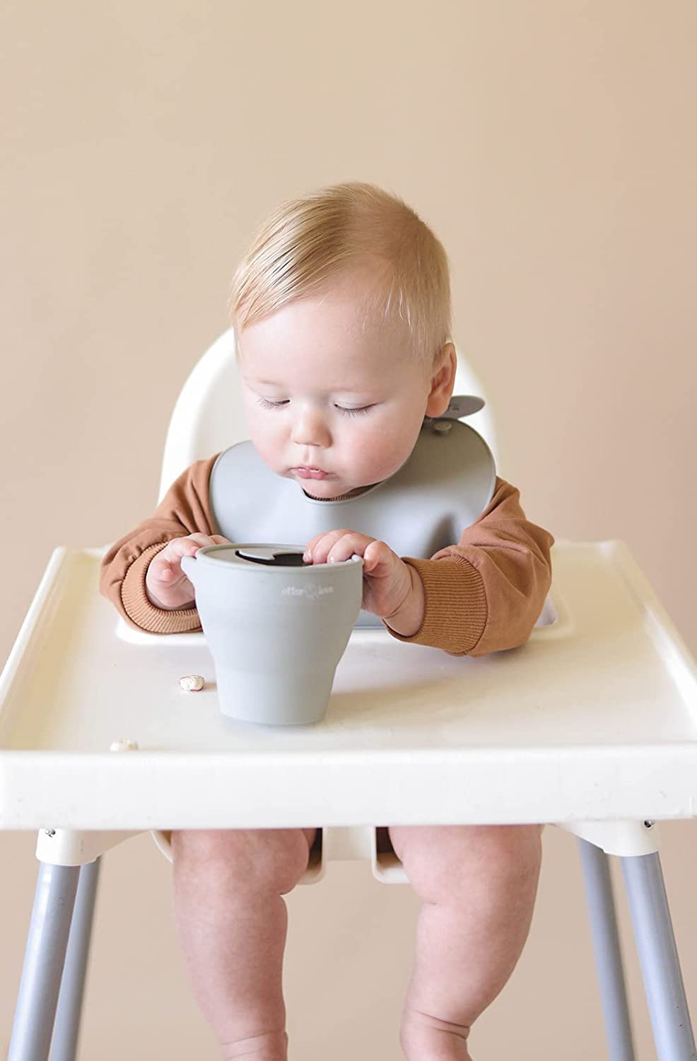 otterlove Collapsable Silicone Snack Container With Attachable Lid | 100% Pure LFGB Platinum Silicone with No Fillers | Snack Cup (2 Pack - Woodchuck & Sand)