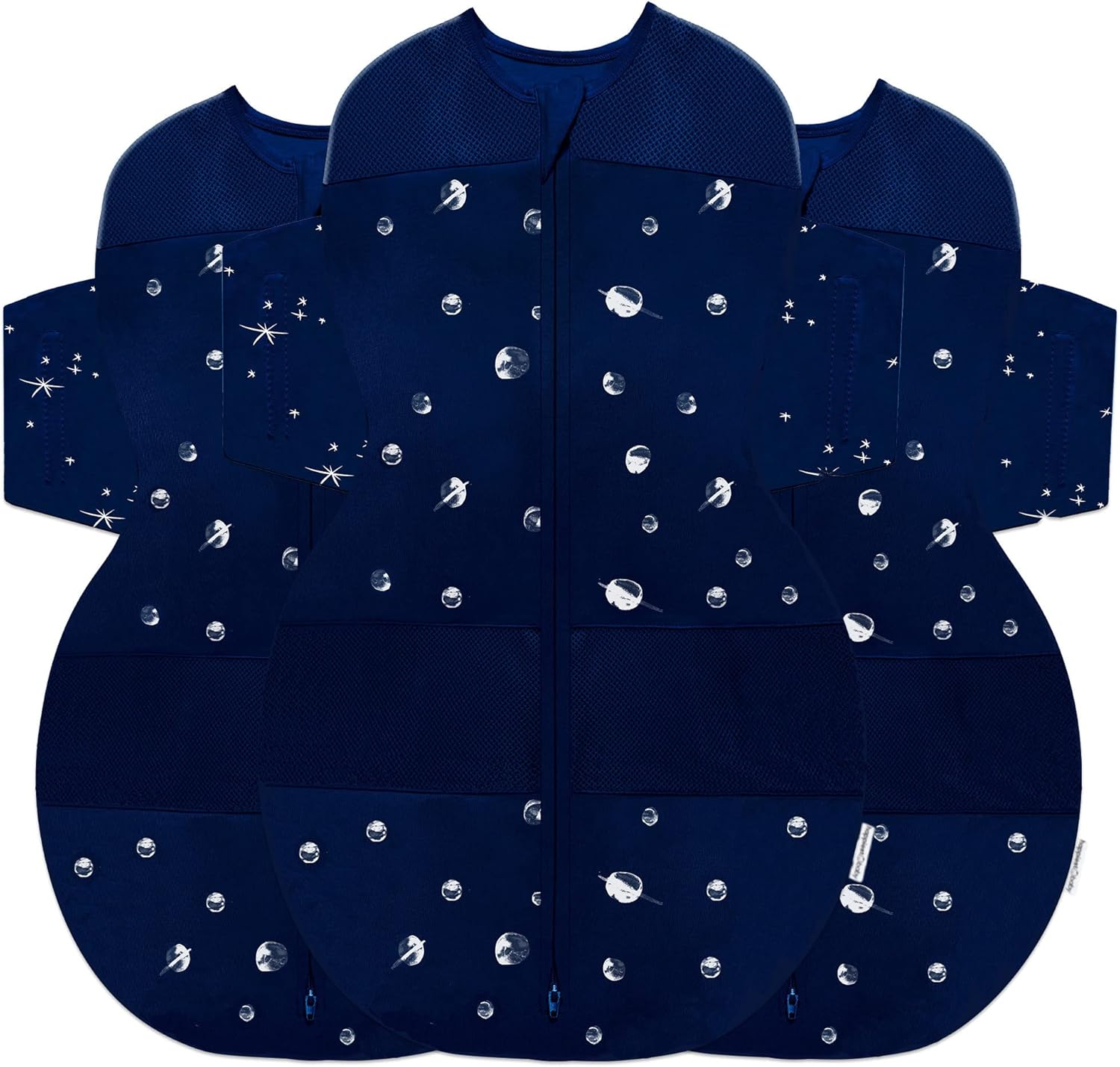 Happiest Baby SNOO Sleep Sack - 100% Organic Cotton Baby Swaddle Blanket - Doctor Designed Promotes Healthy Hip Development - 3-Pack Bundle (Midnight Planets, S, M, L)