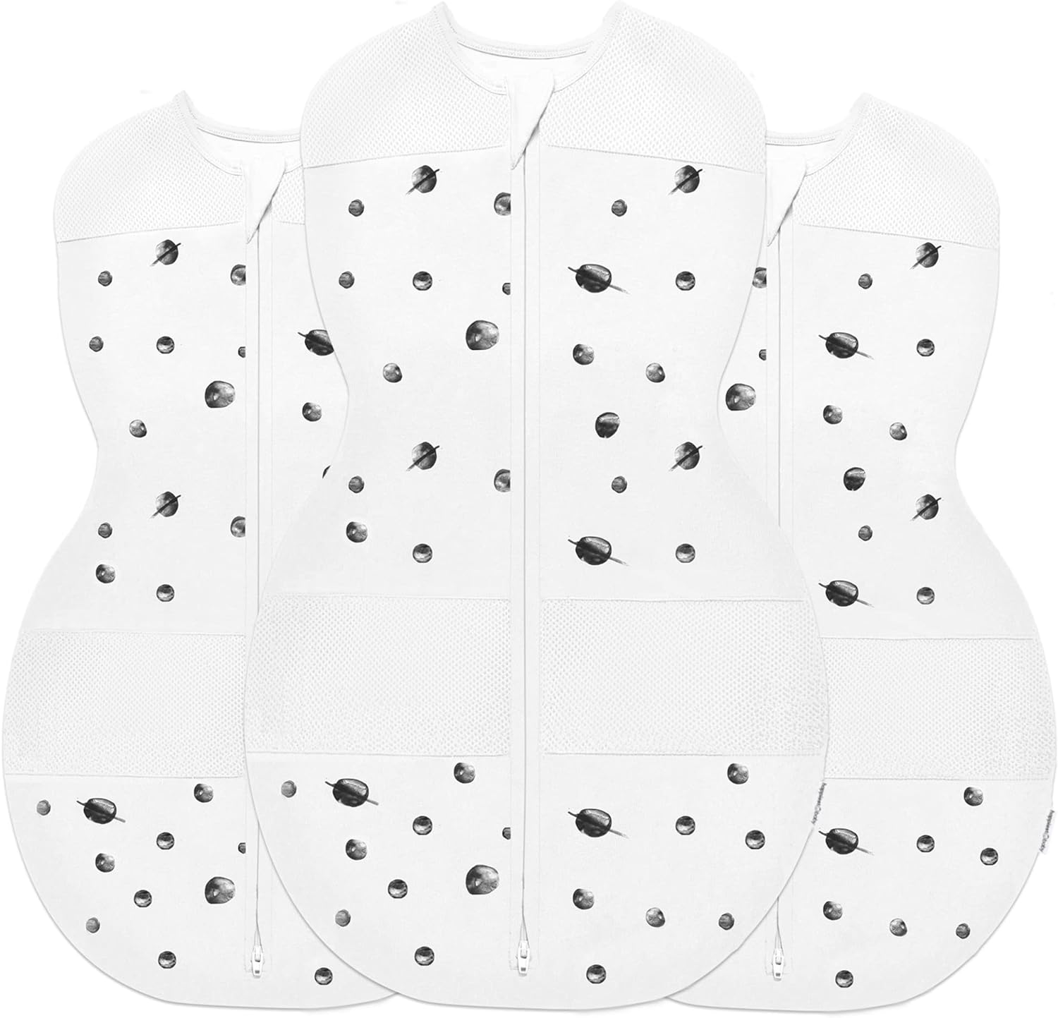 Happiest Baby Sleepea 5-Second Swaddle - 100% Organic Cotton Baby Swaddle Blanket - Doctor Designed Promotes Healthy Hip Development - 3-Pack Bundle (Ivory Planets, S, M, L)