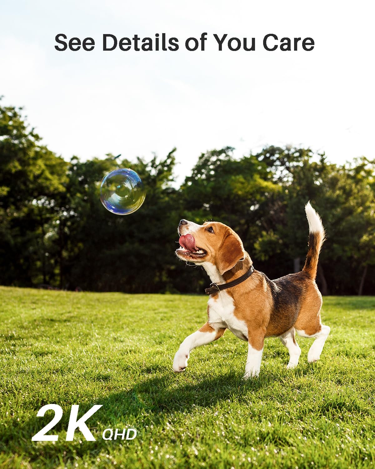 - 【2K Clearer Video】Picture Quality is 65% improved from 1080p. With 135 degree wider viewing angle and 10x digital zoom, every detail of your property is in your hand. Integrated spotlight and color night vision make it clear at night.