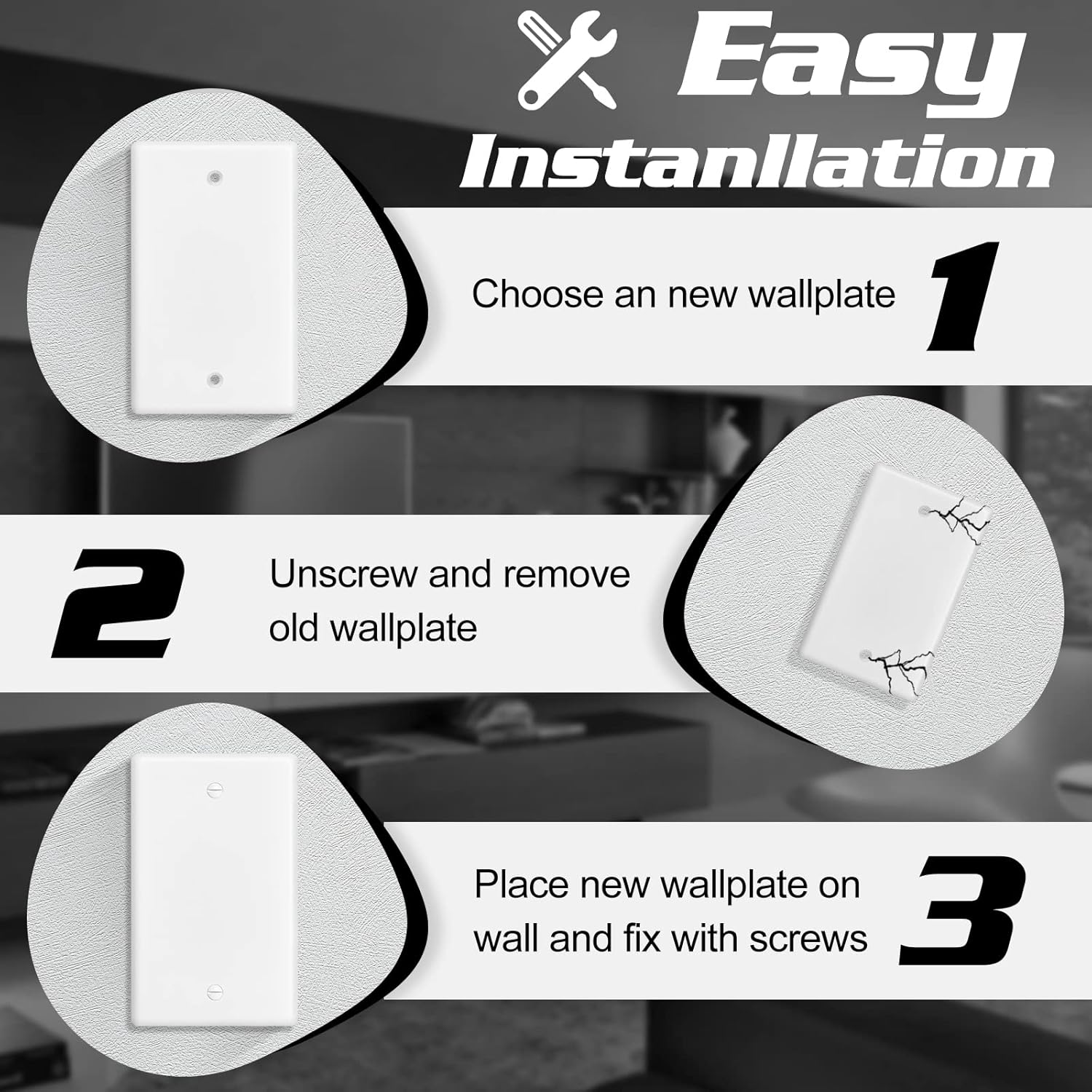 - ✔EASY INSTALLATION: Installs in minutes for a clean and sophisticated look. decorator blank plate covers are easy to replace the wall plate of the same configuration, Screw-catch feature holds mounting screws captive to simplify installation.